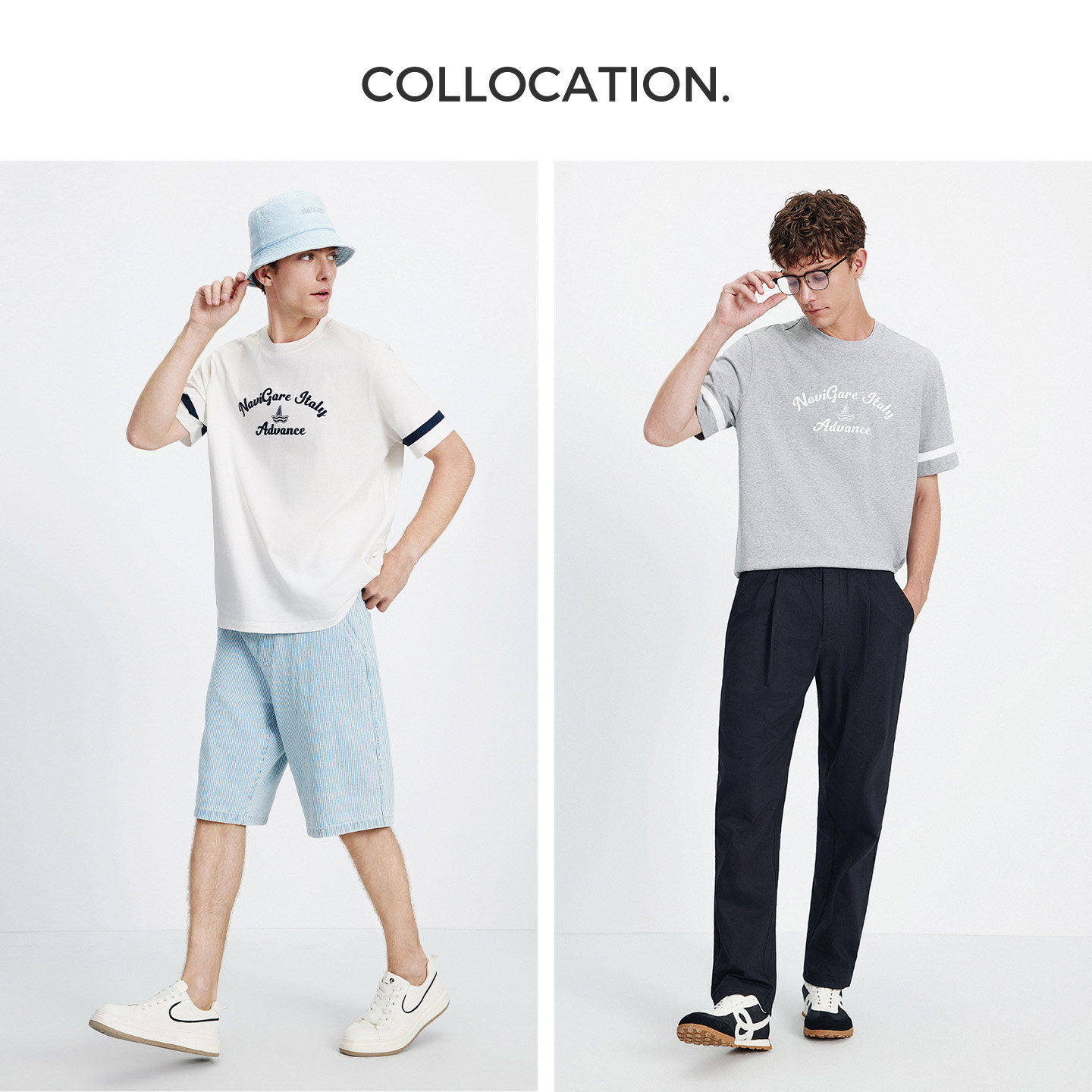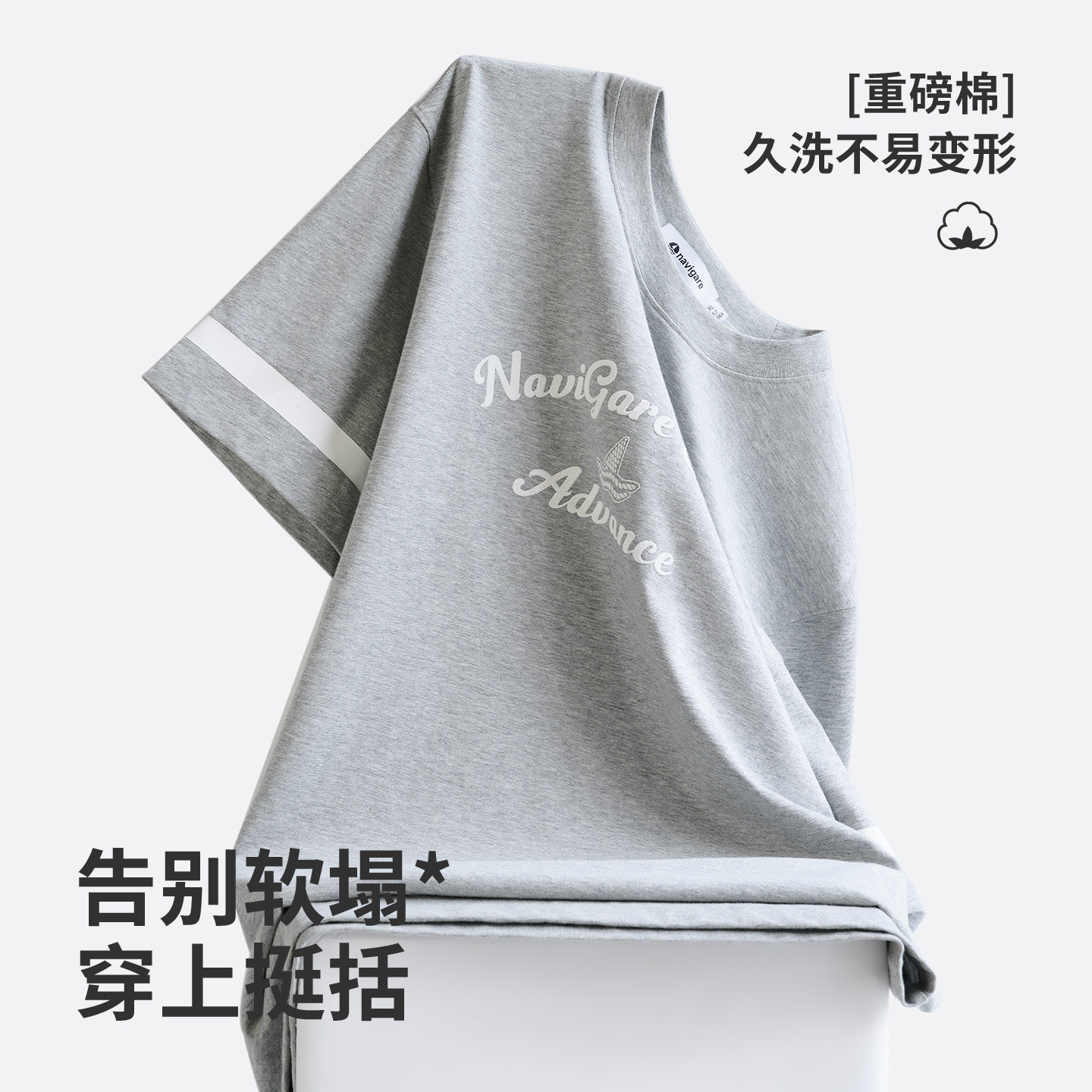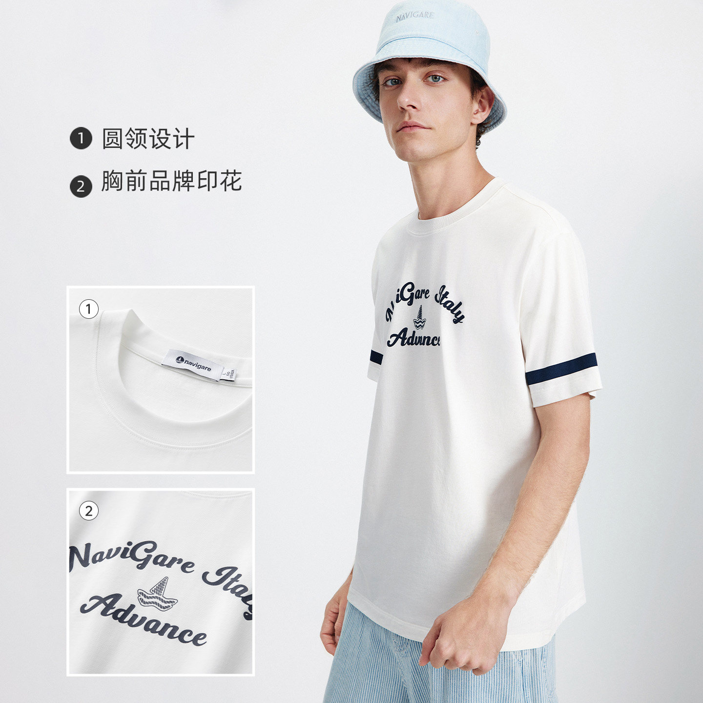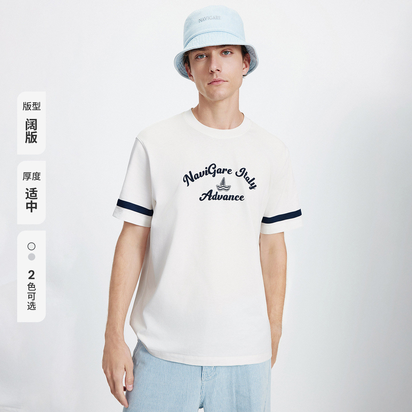 [凉感]Navigare意大利小帆船圆领纯棉T恤男2026夏季宽松短袖体恤