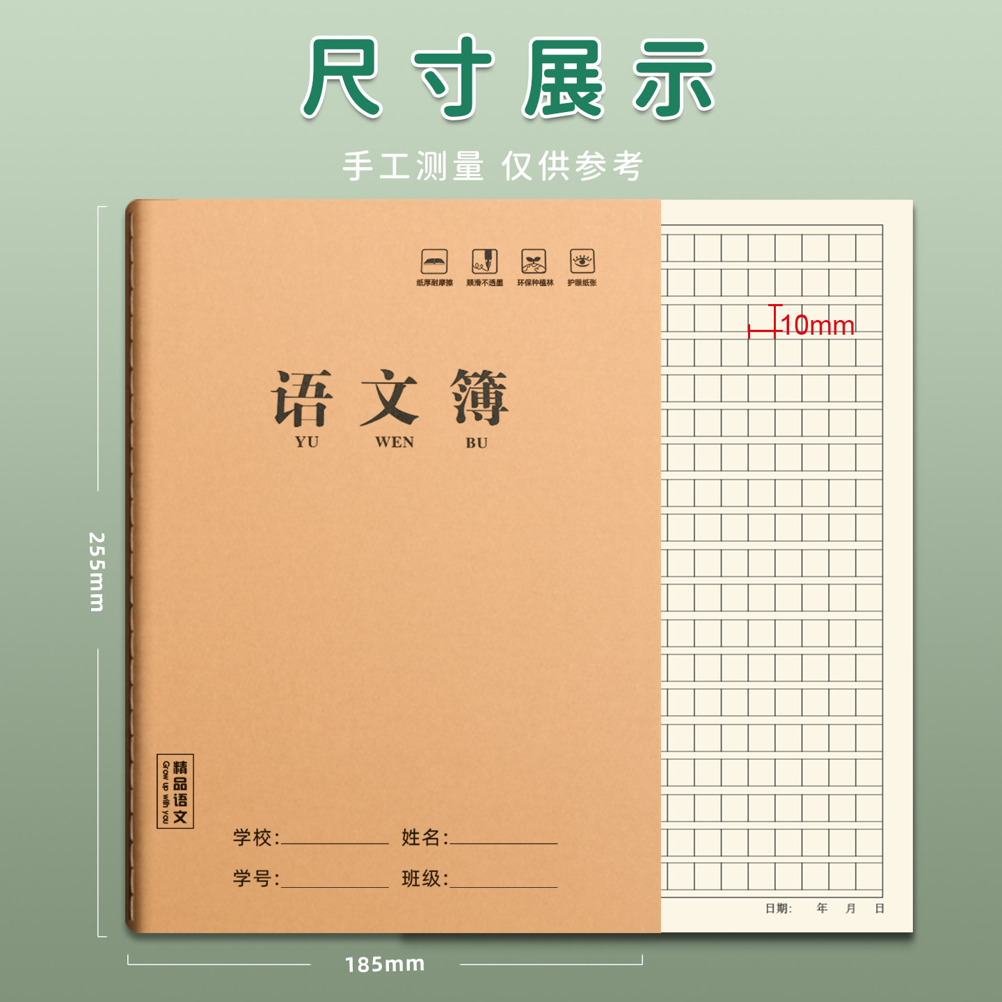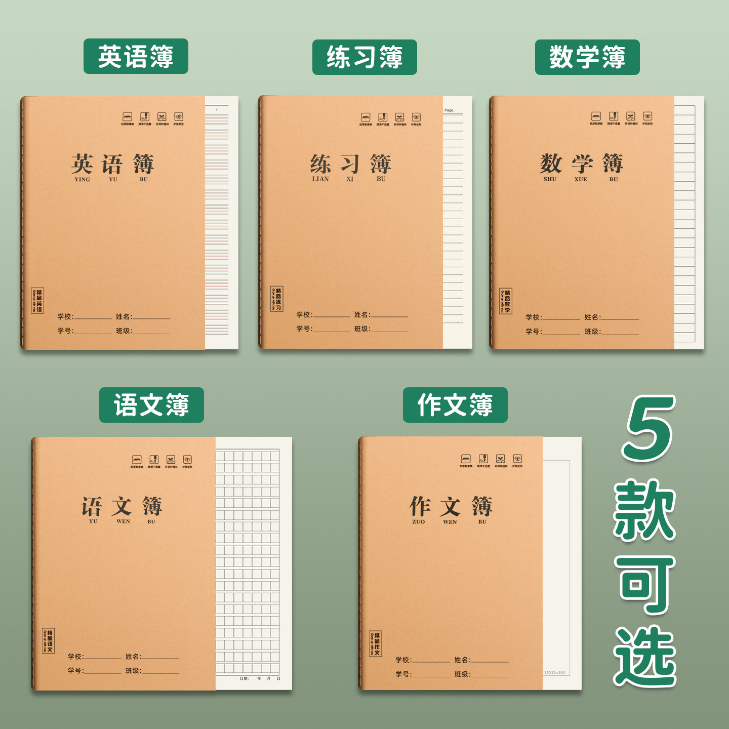 语文簿16K小学生专用初高中生练习本子作业本子加厚牛皮护眼纸张数学本作文本英语本语文簿统一标准笔记本子