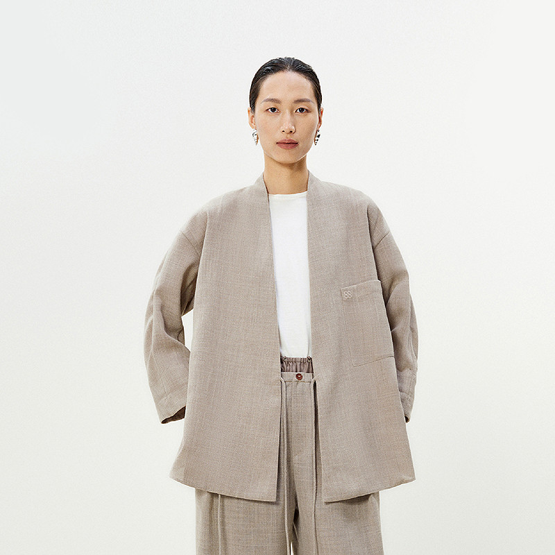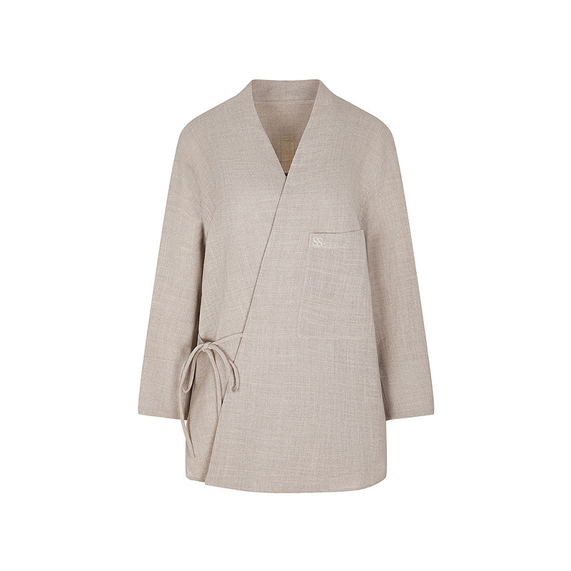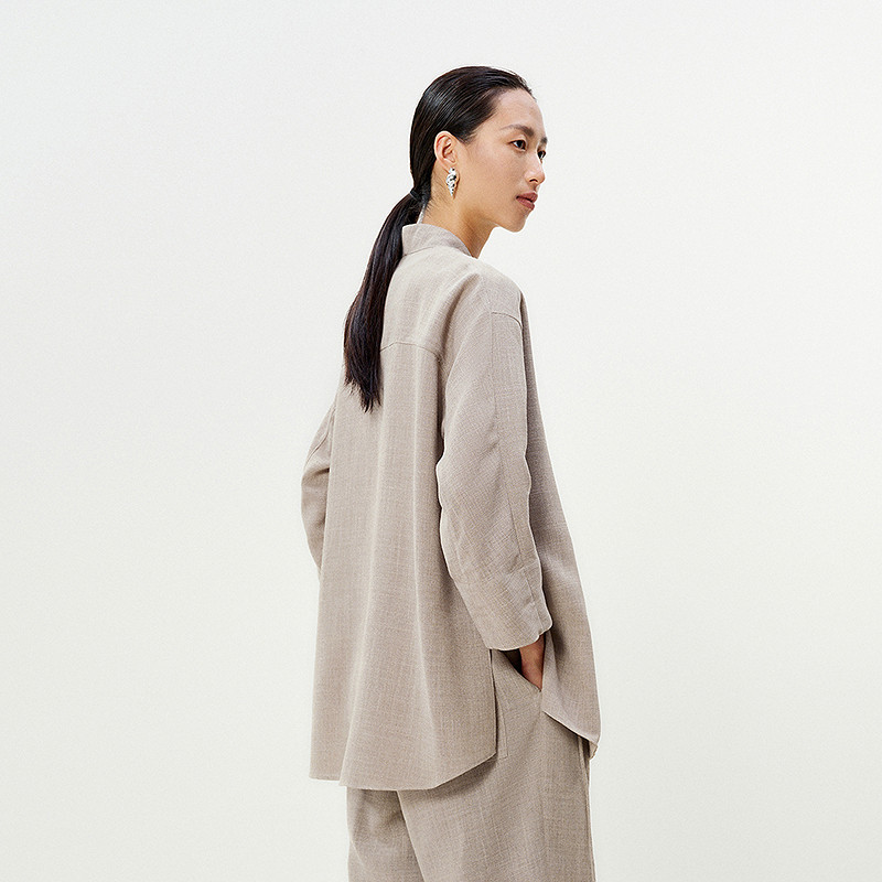 【0压系列】LESS新中式衬衫女无扣斜门襟系带开衩上衣2P5210800