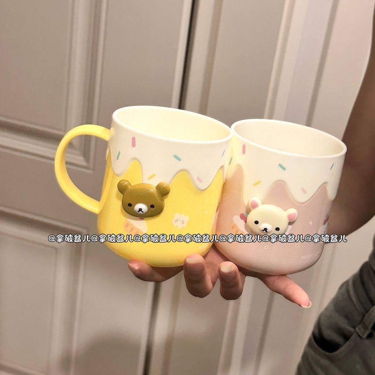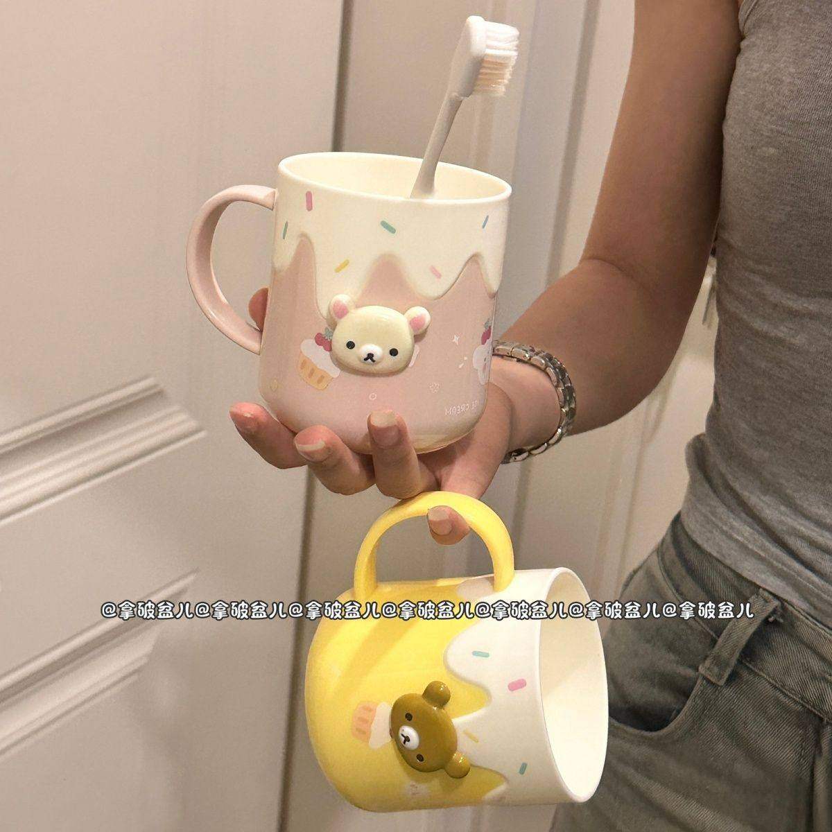 可爱轻松熊洗漱杯情侣漱口杯家用高颜值刷牙杯漱口学生杯子牙刷