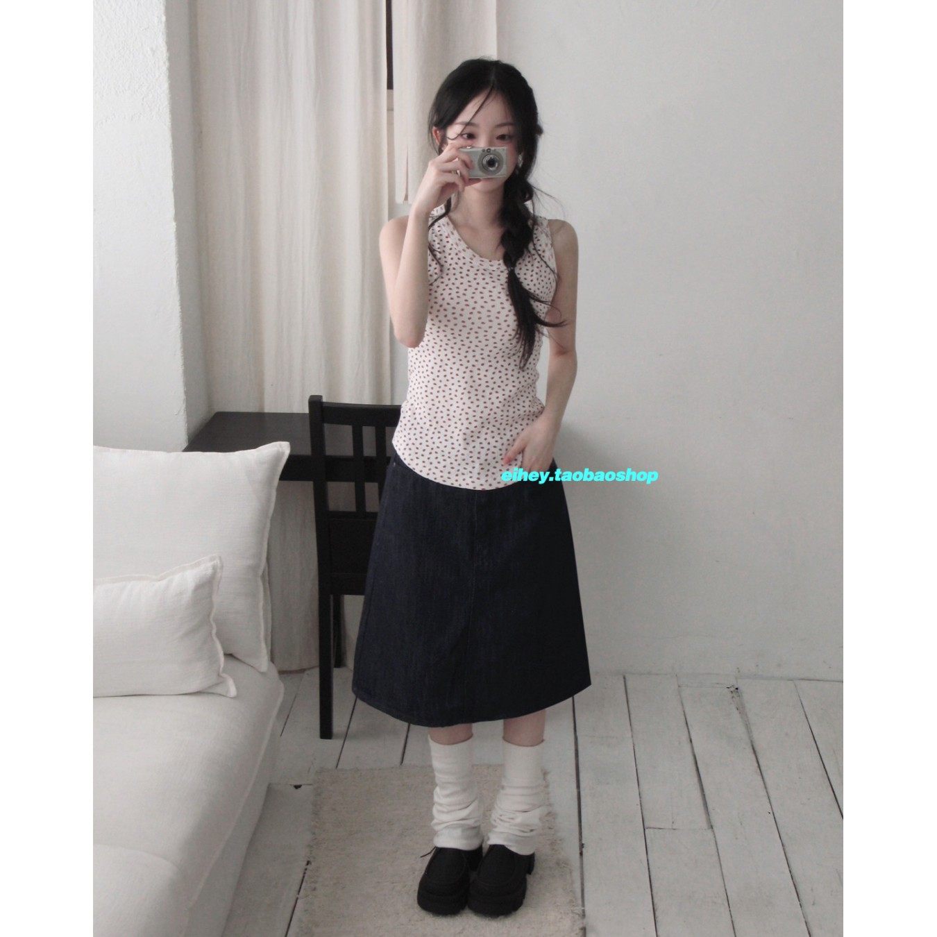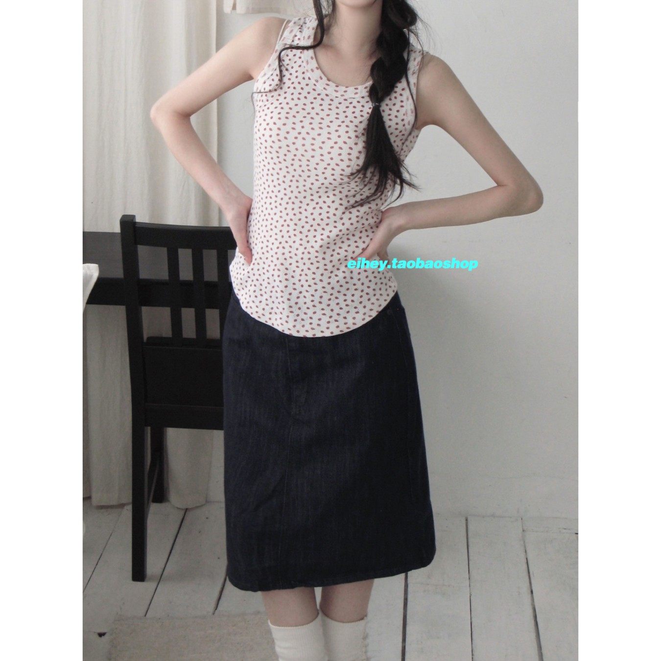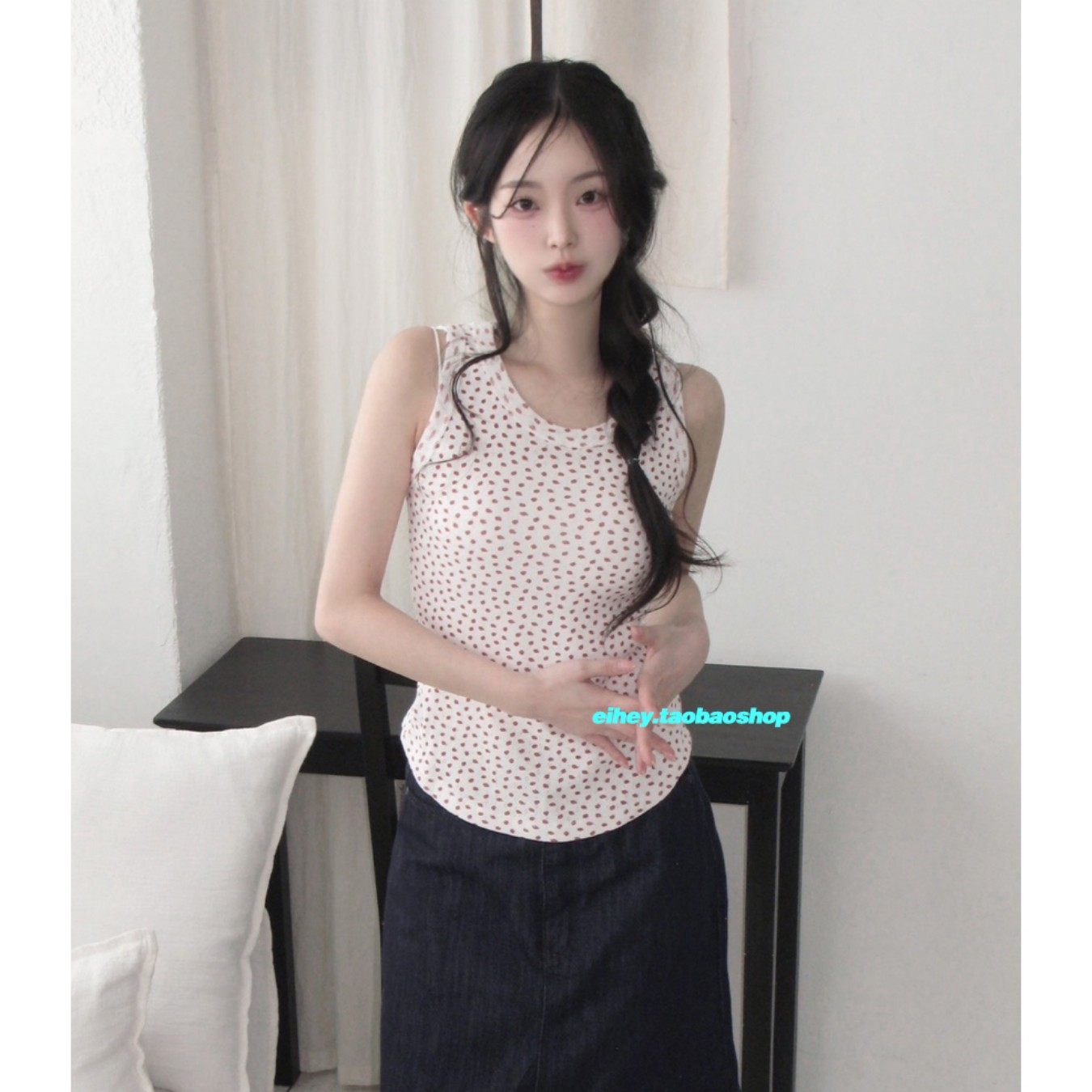 eihey诶嘿25夏季软妹可爱草莓图案印花无袖上衣背心纯棉弹力吊带