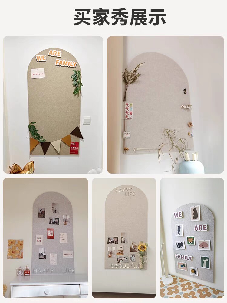 拱形毛毡墙贴幼儿园照片墙留言记事板玄关客厅装饰环创软木板自粘