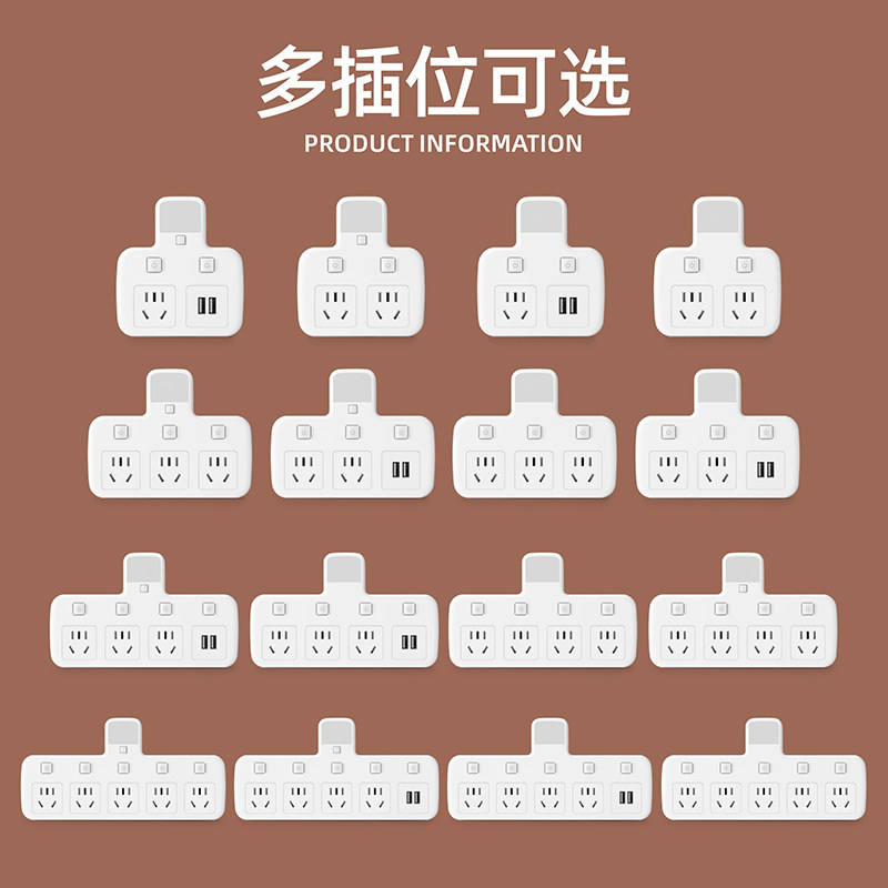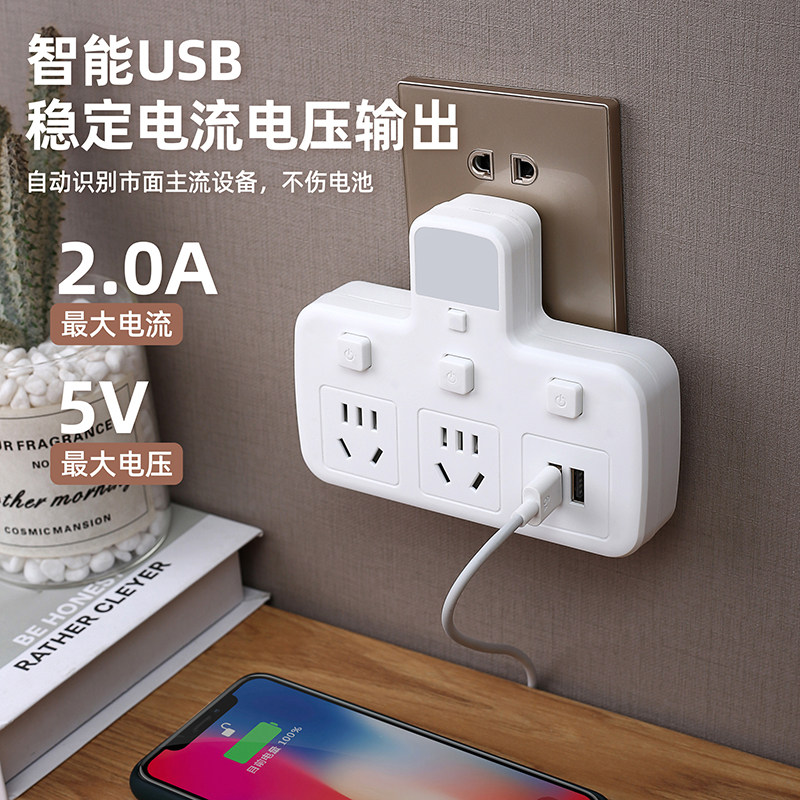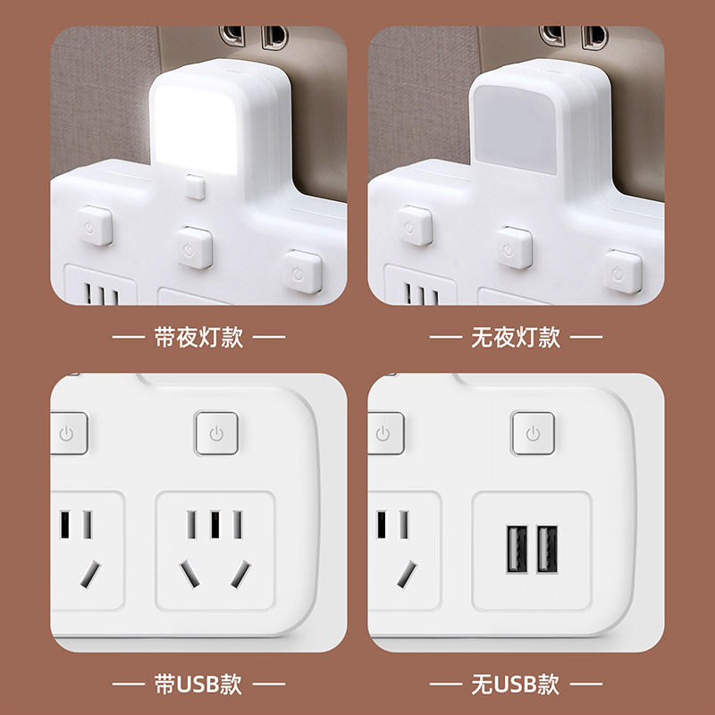 多功能纯铜插座转换器夜灯USB独立开关电源一转多孔扩展家用插排