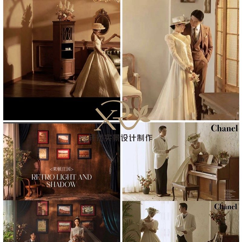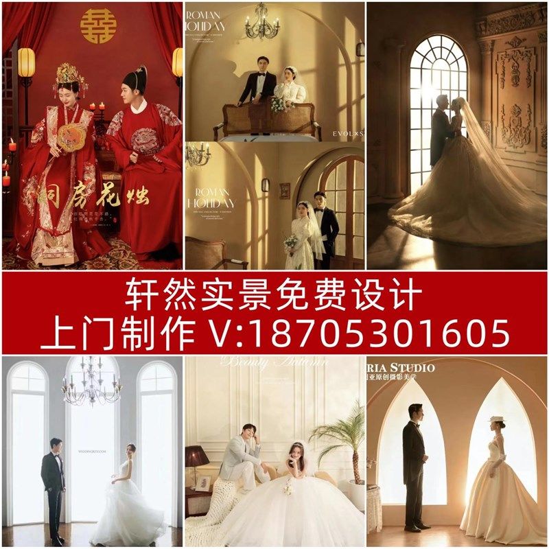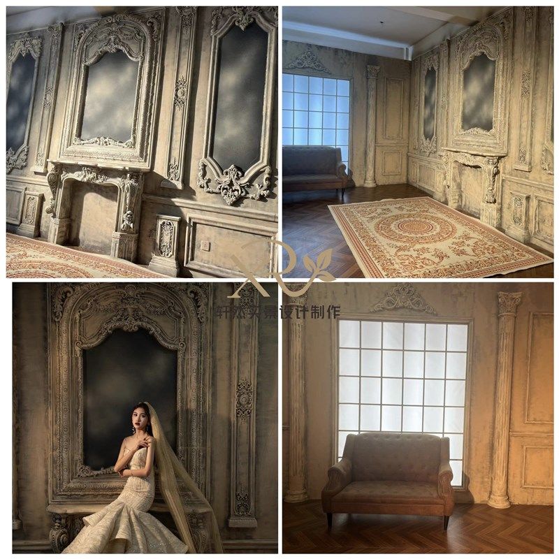 新款影楼婚纱实景影棚装修欧式法式古装复古实景制作摄影基地装修