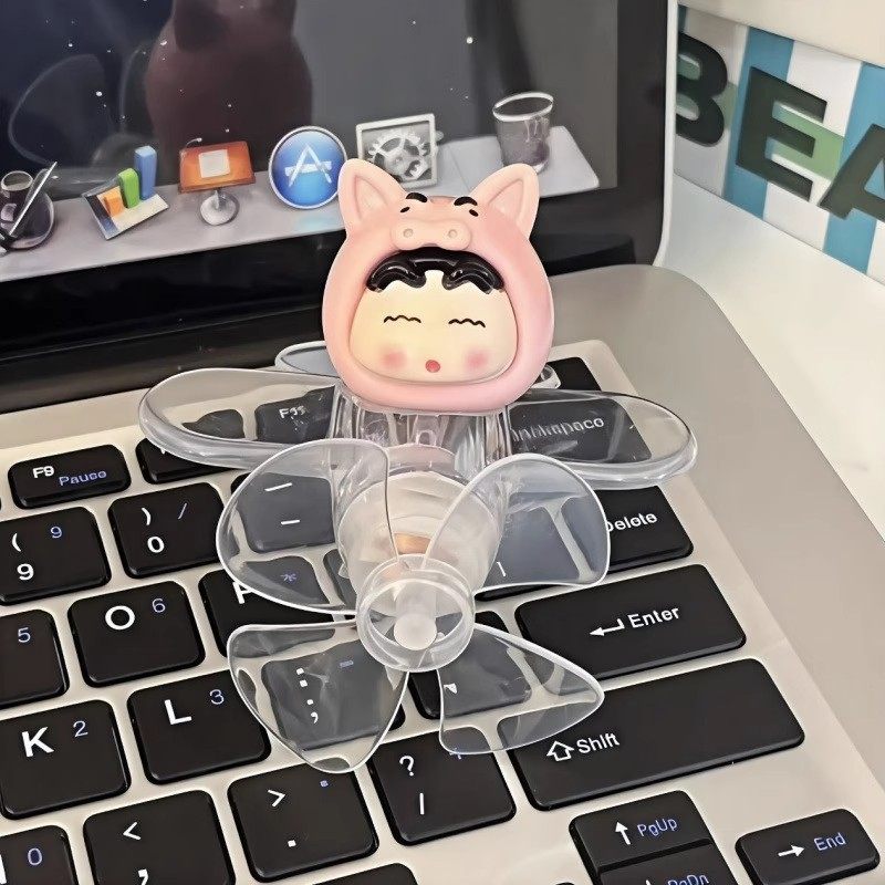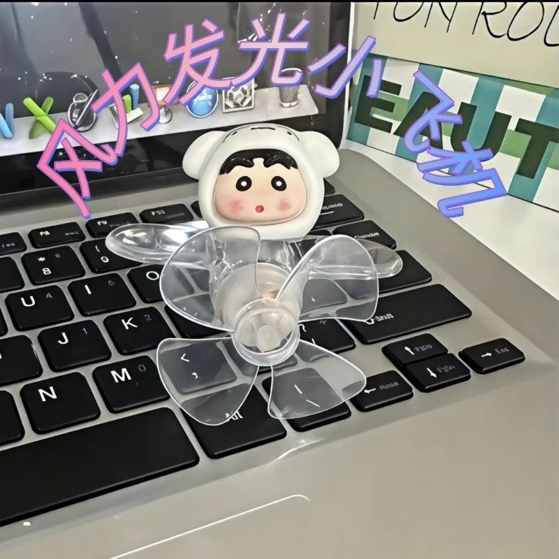 蜡笔小新款风能发光小飞机七彩旋转LED装饰摆件电摩通用后视镜