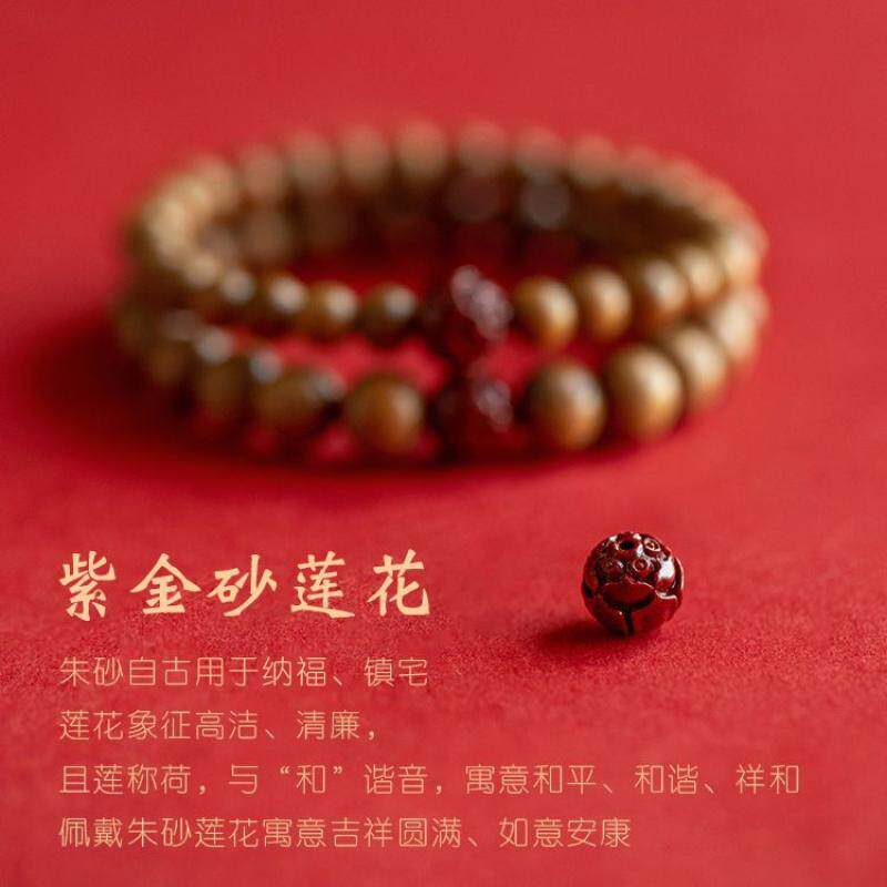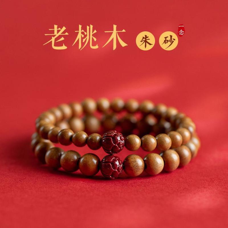 原创设计老桃木莲花朱砂手链男女木手串复古民族风本命年佩戴吉祥