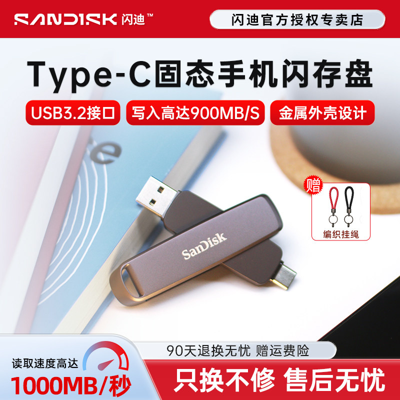 闪迪高速固态U盘512g大容量双头type-c双接口手机电脑两用1t优盘