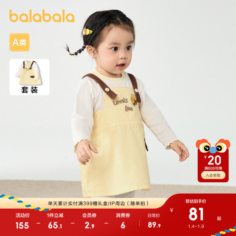 巴拉巴拉宝宝秋装女童长袖套装儿童衣服背带裙两件套可爱活力洋气