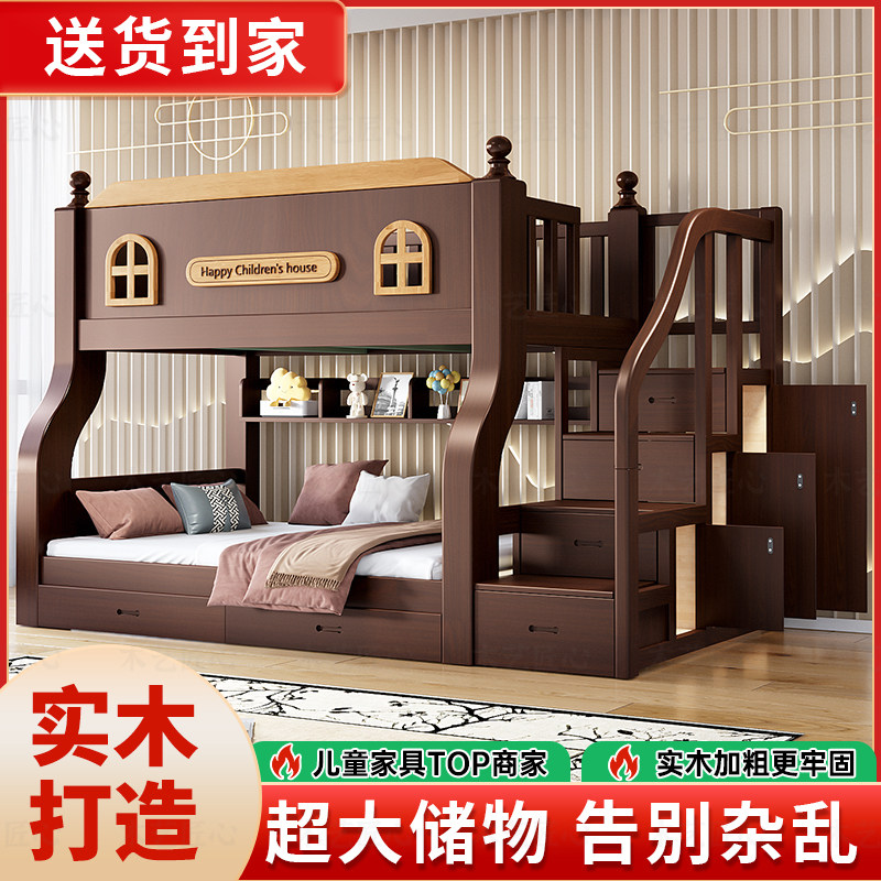 上下铺双层床上下床高低床子母床儿童床全实木加粗加厚成人小户型