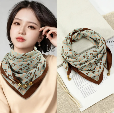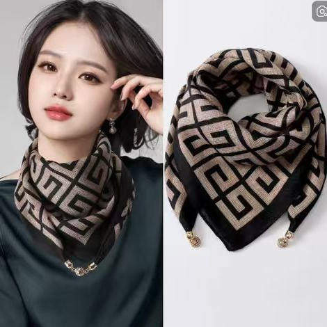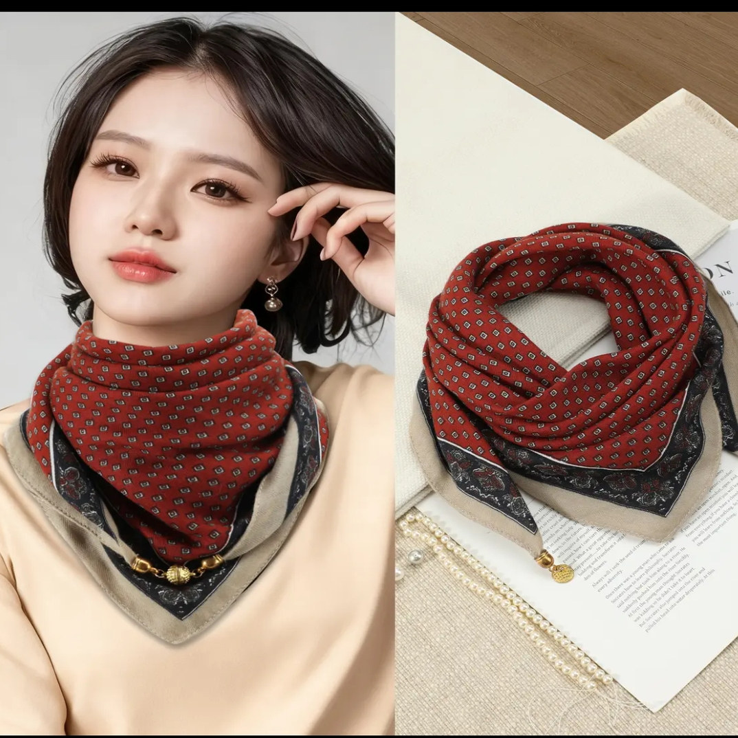 2025新款高级感三角巾时尚磁吸扣小方巾秋冬保暖围脖围巾女士披肩