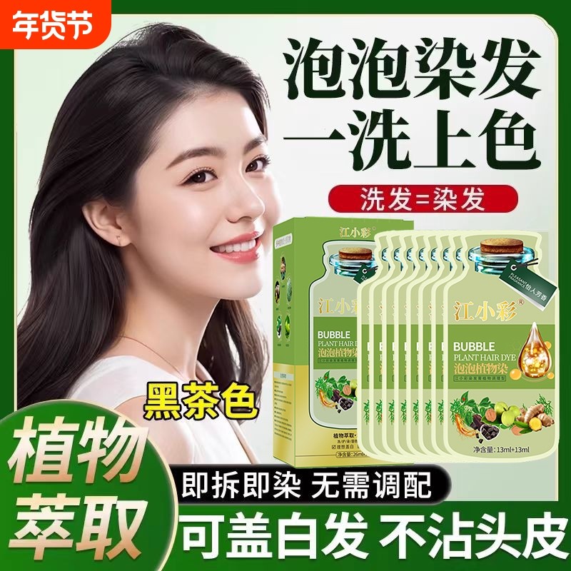 正品袋装植物泡泡染发剂遮盖白发自己在家染发膏纯不沾头皮黑茶色