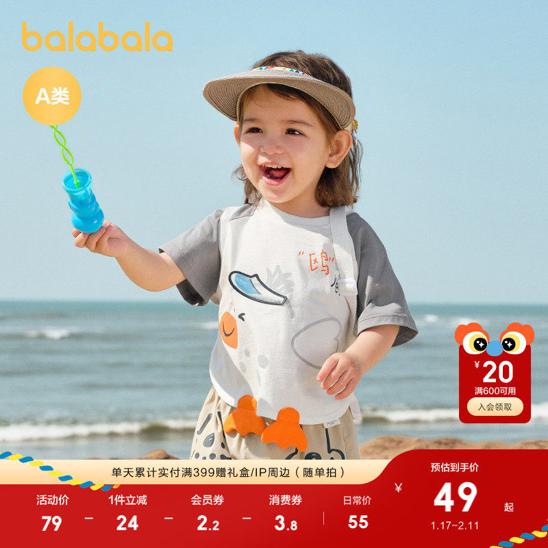 巴拉巴拉童装宝宝短袖t恤婴儿打底衫女童男童2025新款夏装纯棉T恤