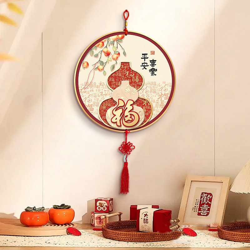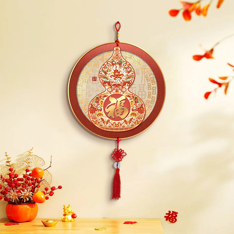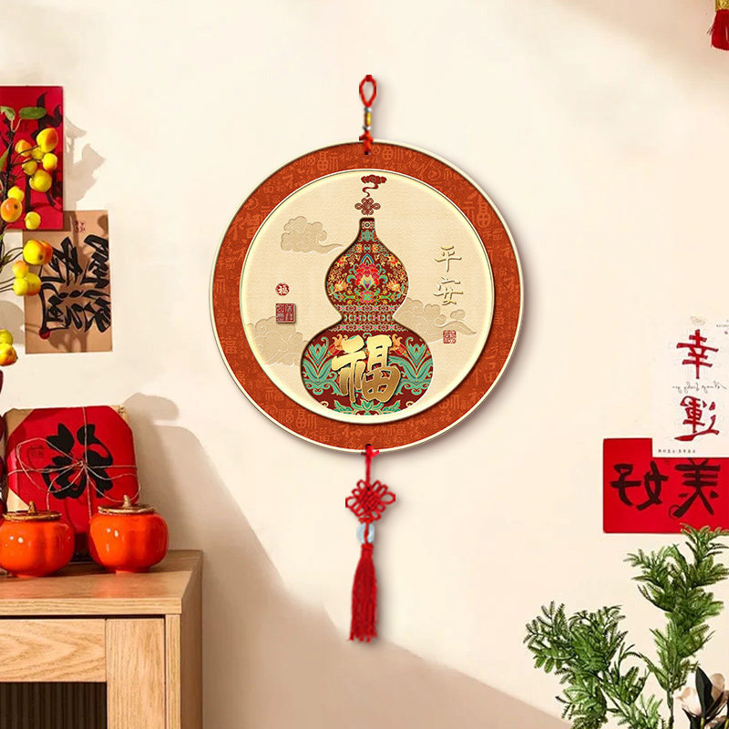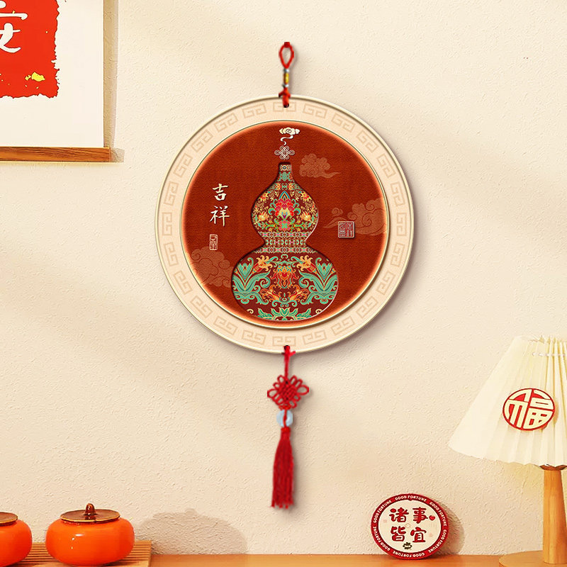 五福临门挂件客厅墙面装饰品新中式葫芦中国结挂饰电视背景墙壁画