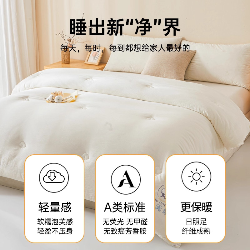水星家纺棉花被60S长绒棉A类棉被加厚纯棉被子春秋被芯四季被冬被