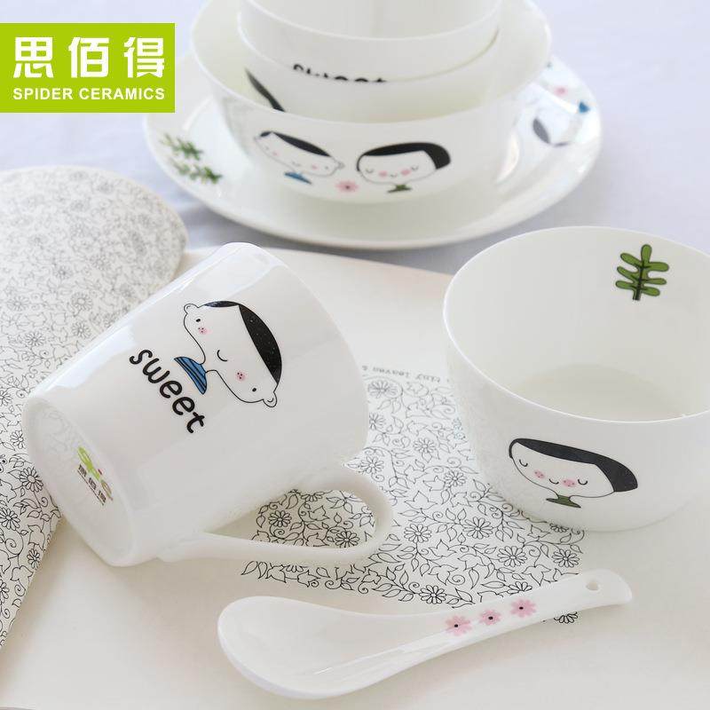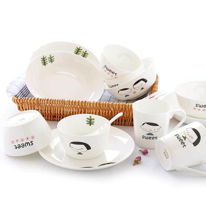唐山骨瓷 餐具套装碗盘16头家用创意韩式陶瓷器 骨瓷餐具套装