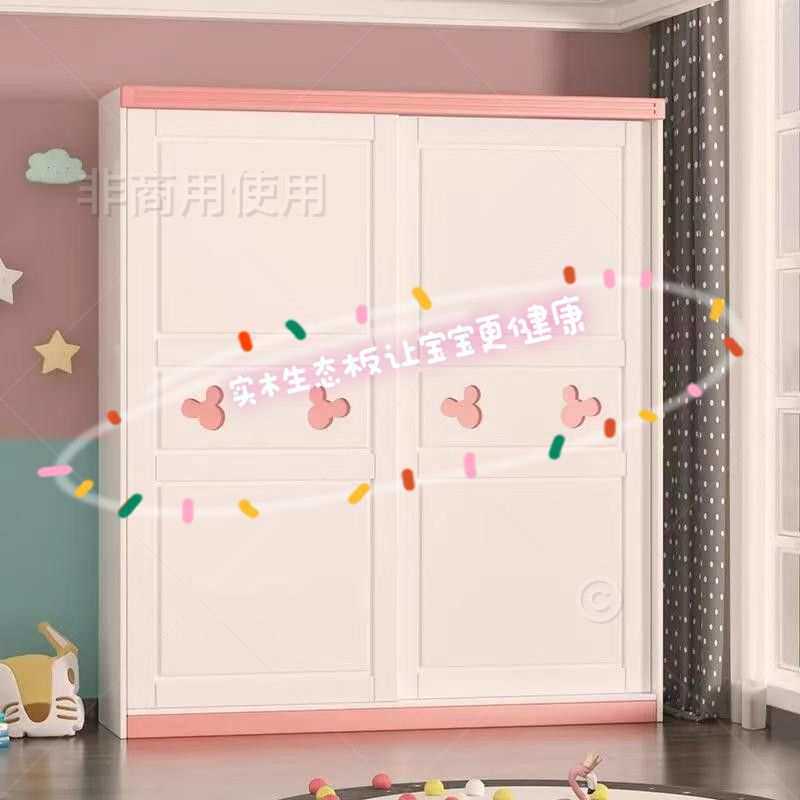 移门衣柜推拉门衣柜儿童房厨柜宝宝儿童衣柜儿童公主风卡通实木