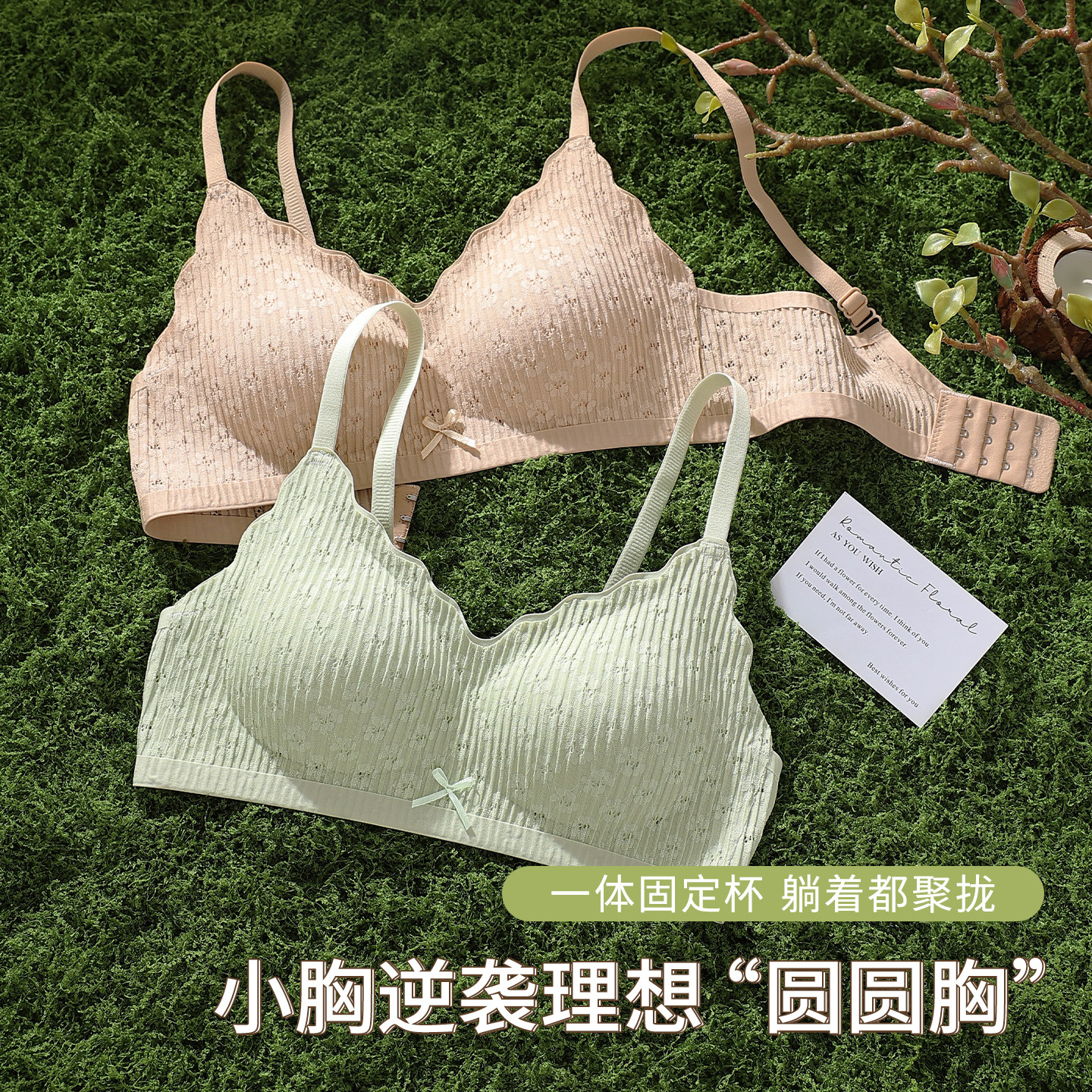 无痕内衣女小胸聚拢夏季薄款运动一体美背心式固定杯无钢圈文胸罩