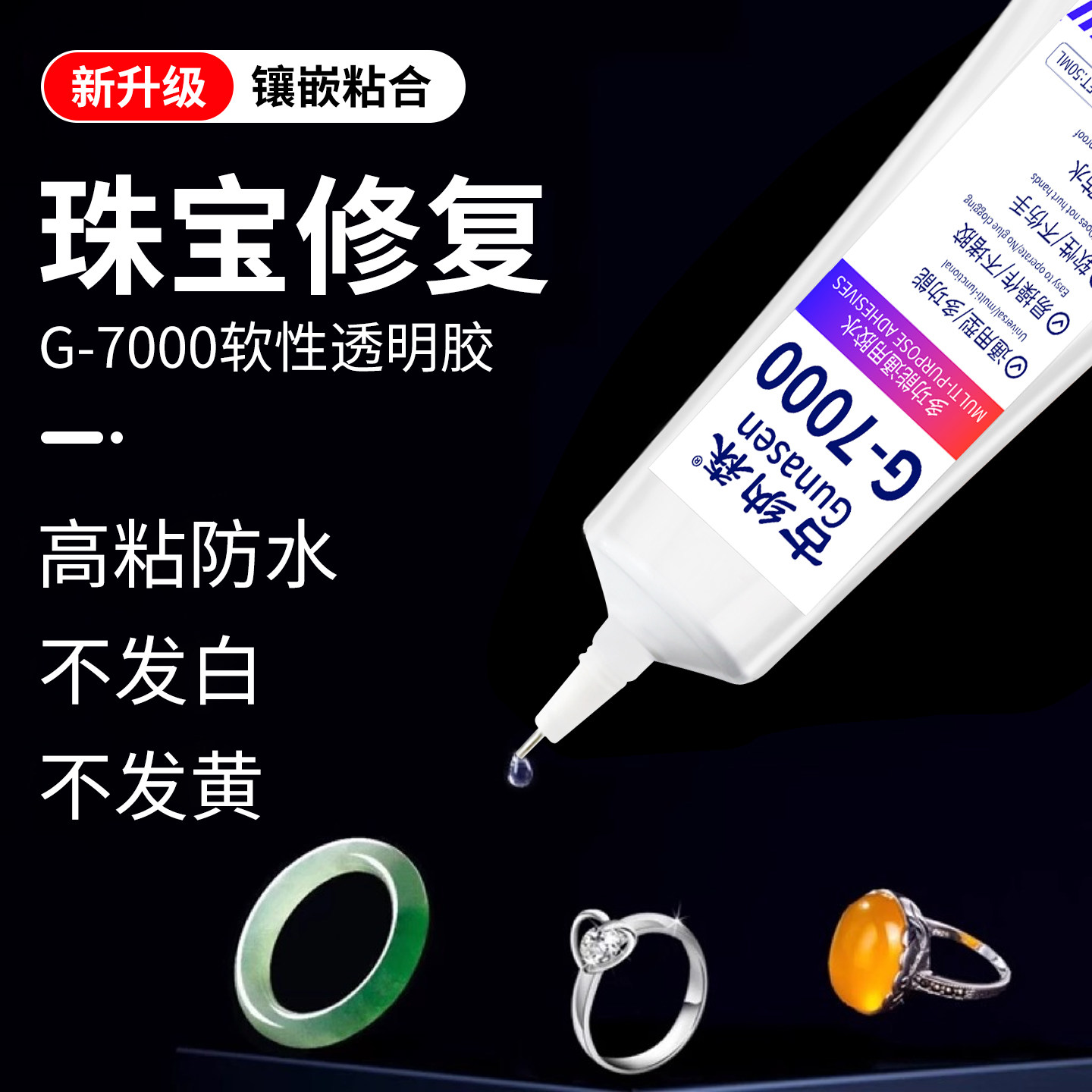 珠宝胶水粘首饰品珍珠耳环耳钉琥珀蜜蜡翡翠宝石玉石吊坠戒指托面针式沾钻透明无痕强力防水镶嵌珠宝专用胶水