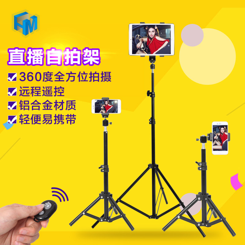 手机拍摄支架直播专用自拍杆三脚架落地式多功能支撑架通用捭机架户外便携伸缩升降网课考研复试架子三角支夹