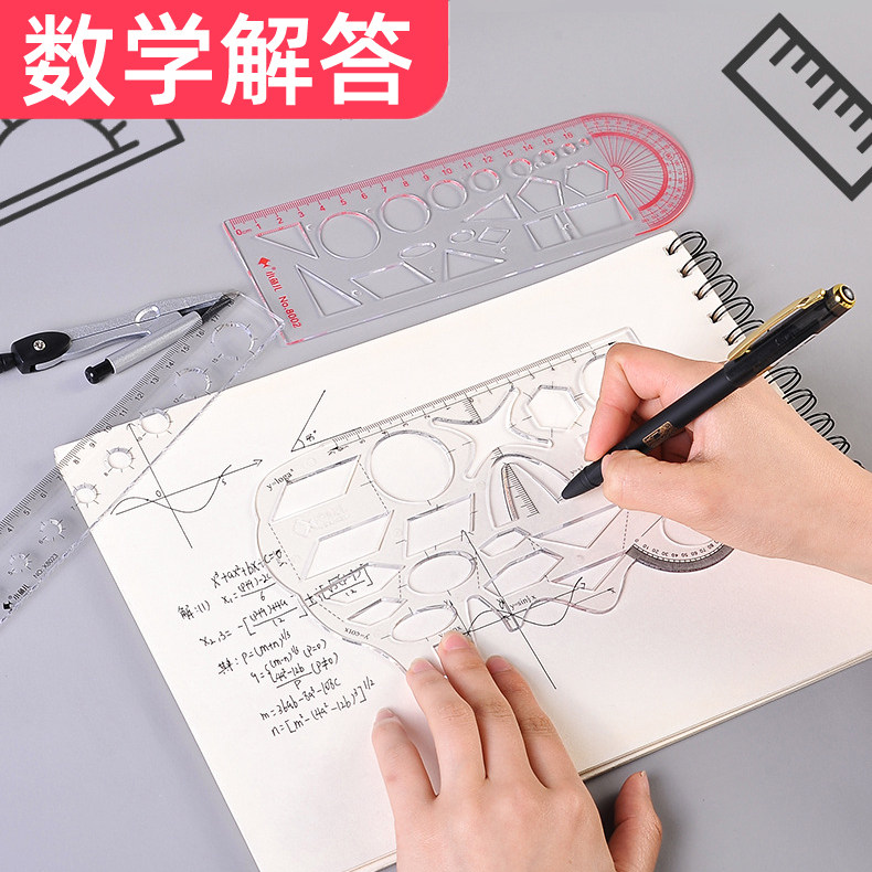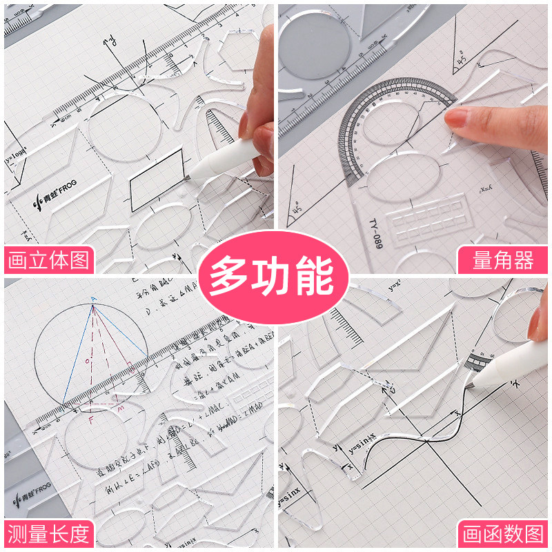 5把装几何函数图形尺子高中学生数学画图多功能模板大象尺绘图用