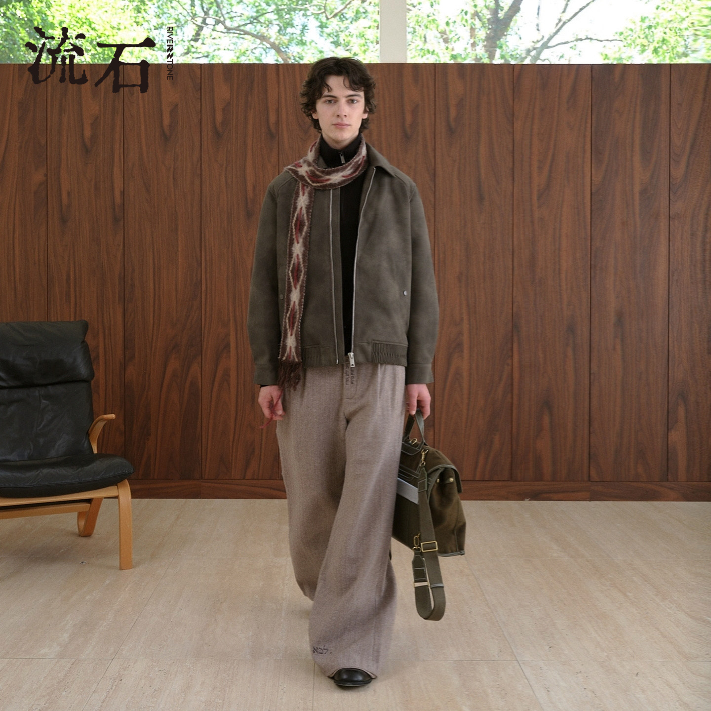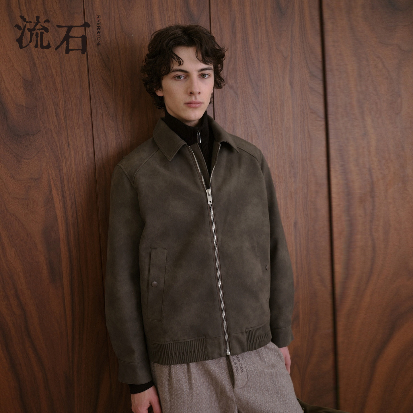 【商场同款】流石男装迷彩压花PU皮羽绒服2025年冬季新款白鸭绒衣