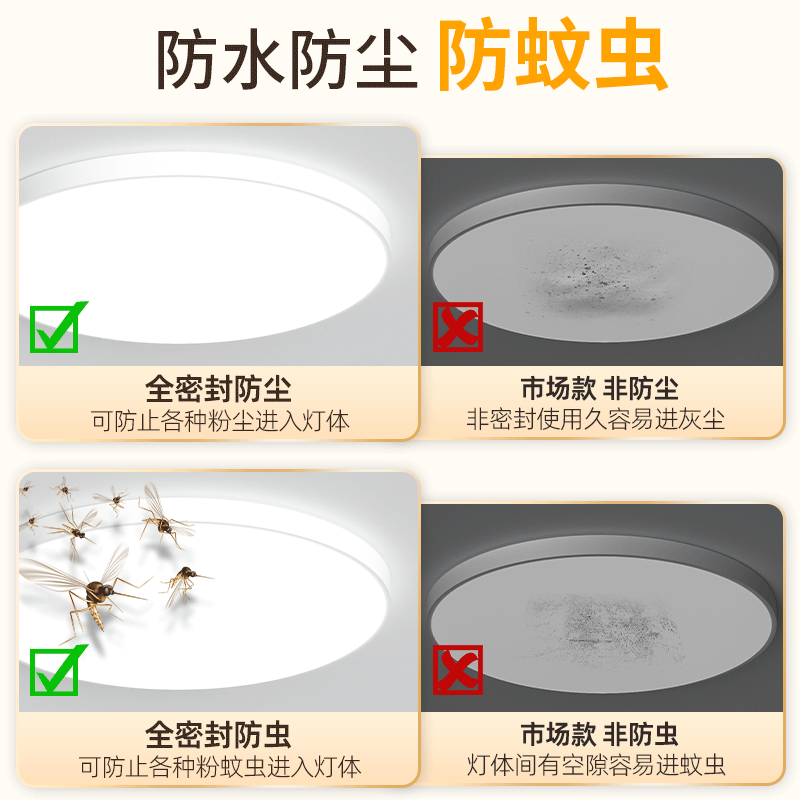 LED吸顶灯超薄圆形防水卫生间浴室厨卫阳台卧室灯过道走廊灯三防