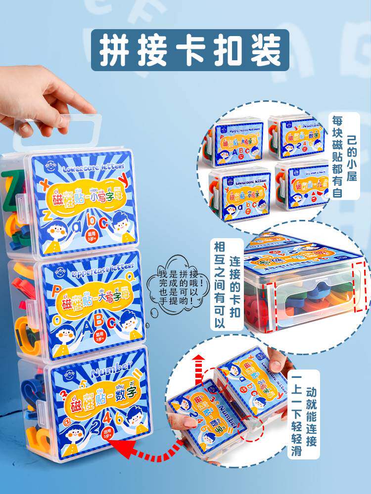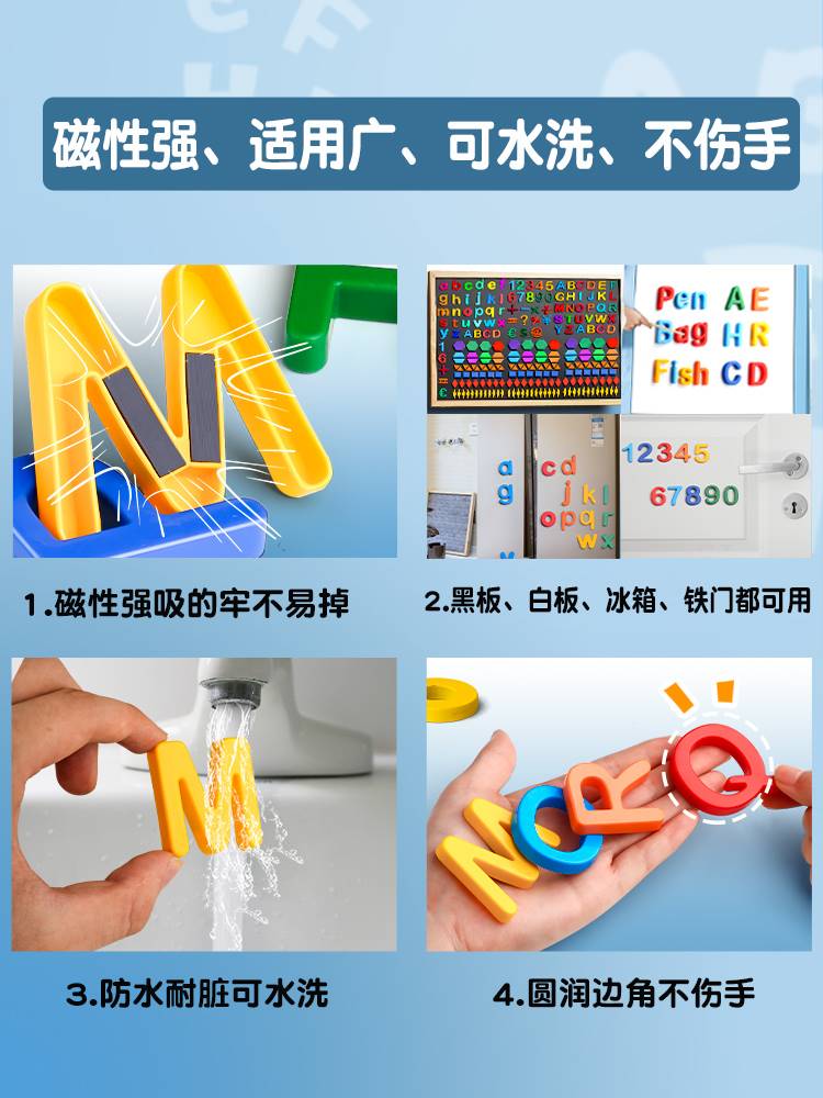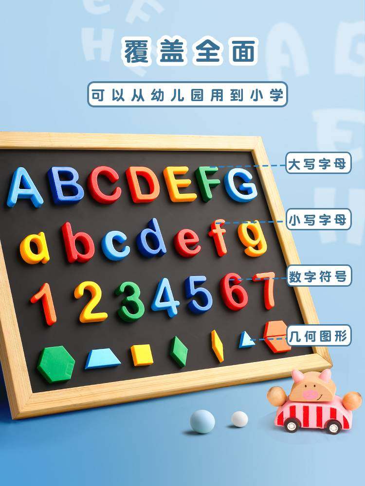 26个英文字母磁力贴黑板教学数字吸铁石磁贴儿童早教彩色拼音磁铁教具小写英语磁性冰箱卡片白板磁吸墙贴大号