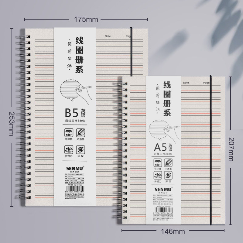 英语笔记本作业本16开A5线圈四线三格英语本16k加厚b5三年级小学生初中生高中生大学生英语抄写本活页大号32K