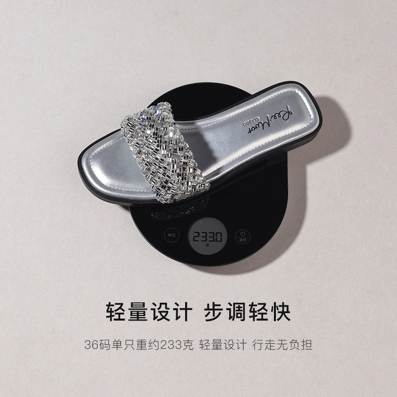 REEMOOR睿慕2025夏季新款法式复古水钻一字拖凉拖鞋女外穿平底拖