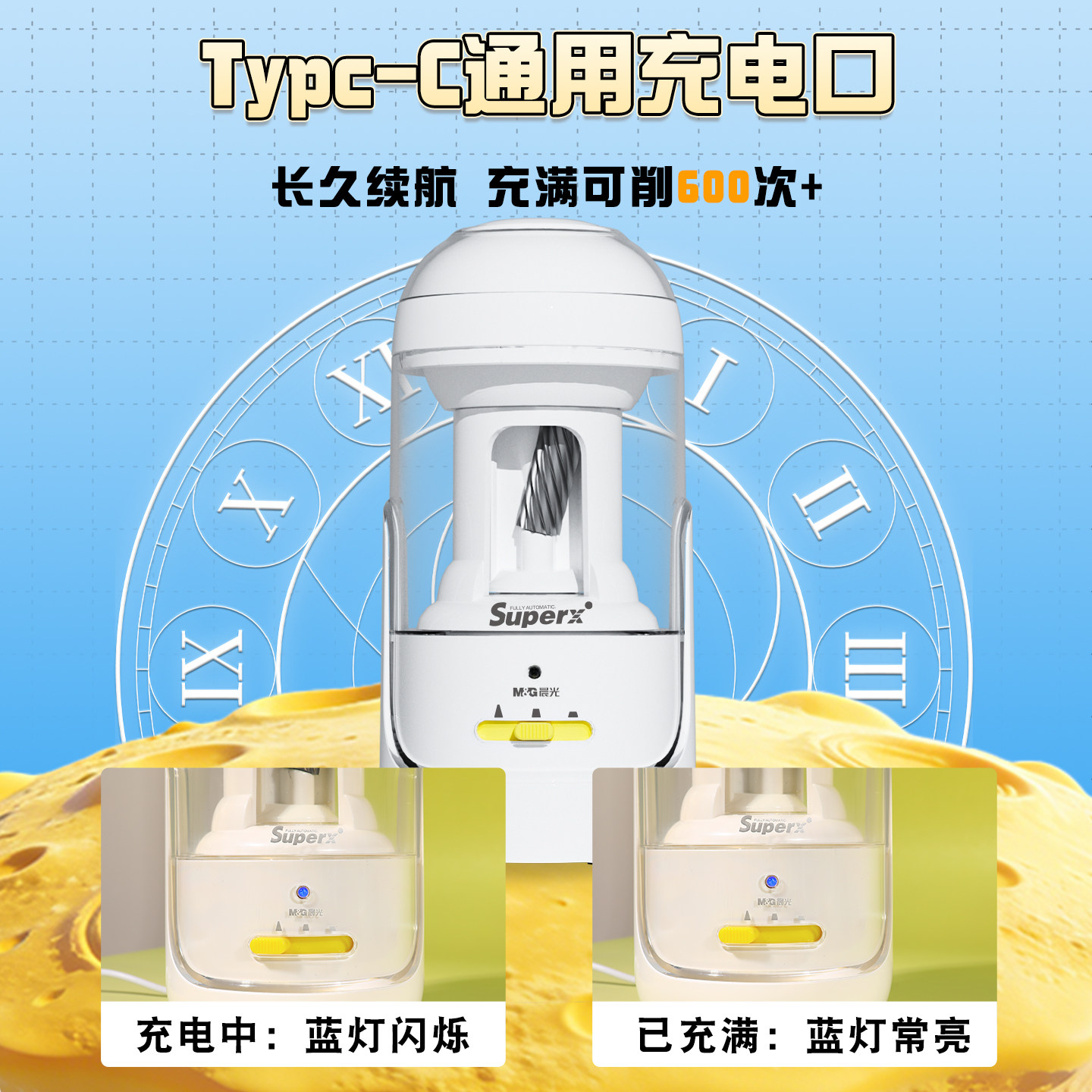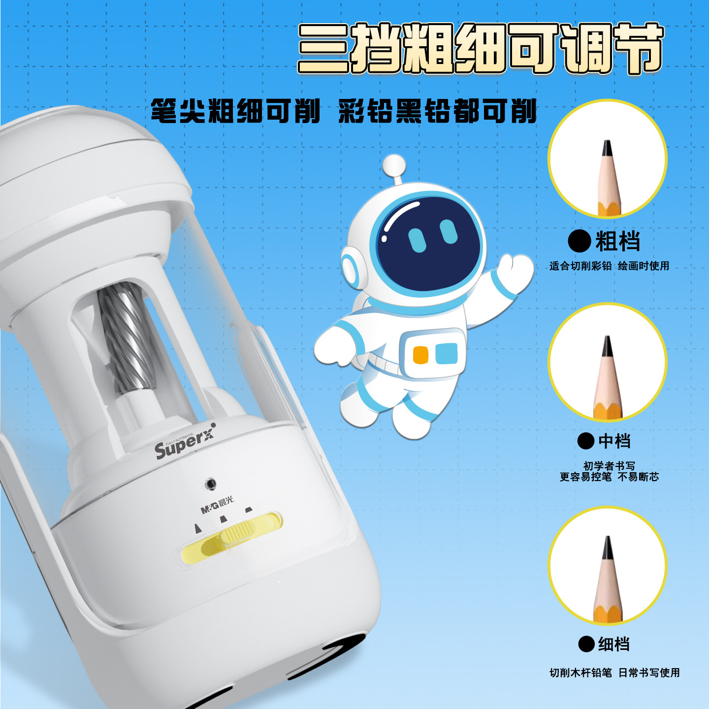 晨光大口径全自动削笔机小学生专用充电式削笔器全自动粗杆转笔刀电动削笔刀卷笔刀大口径学生铅笔刀幼儿园