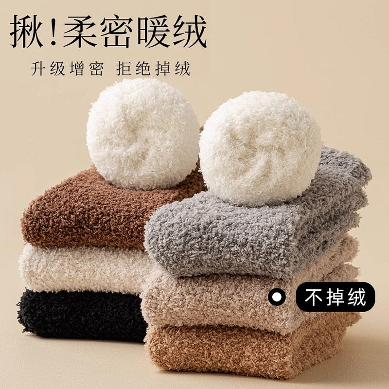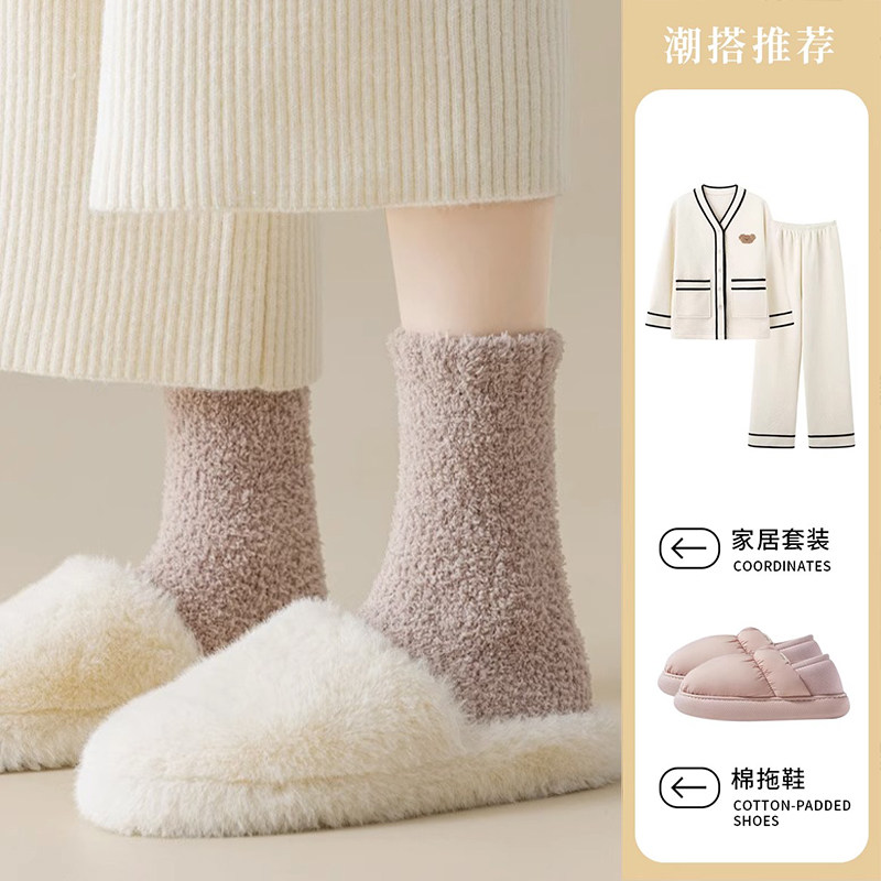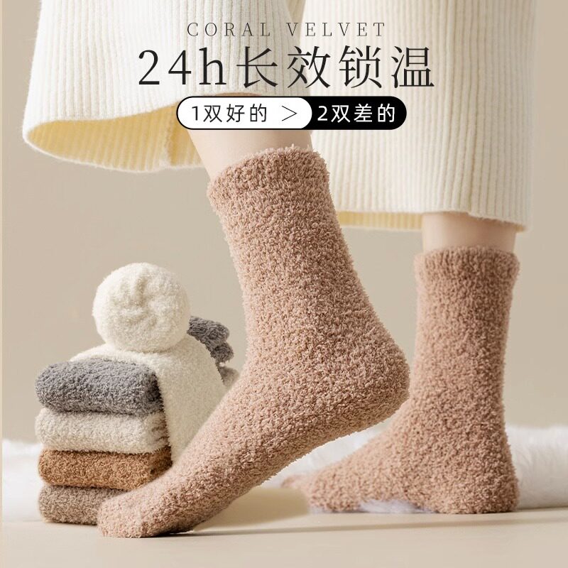 珊瑚绒袜子女冬季加厚加绒保暖地板袜睡眠月子袜秋冬新款睡觉袜子