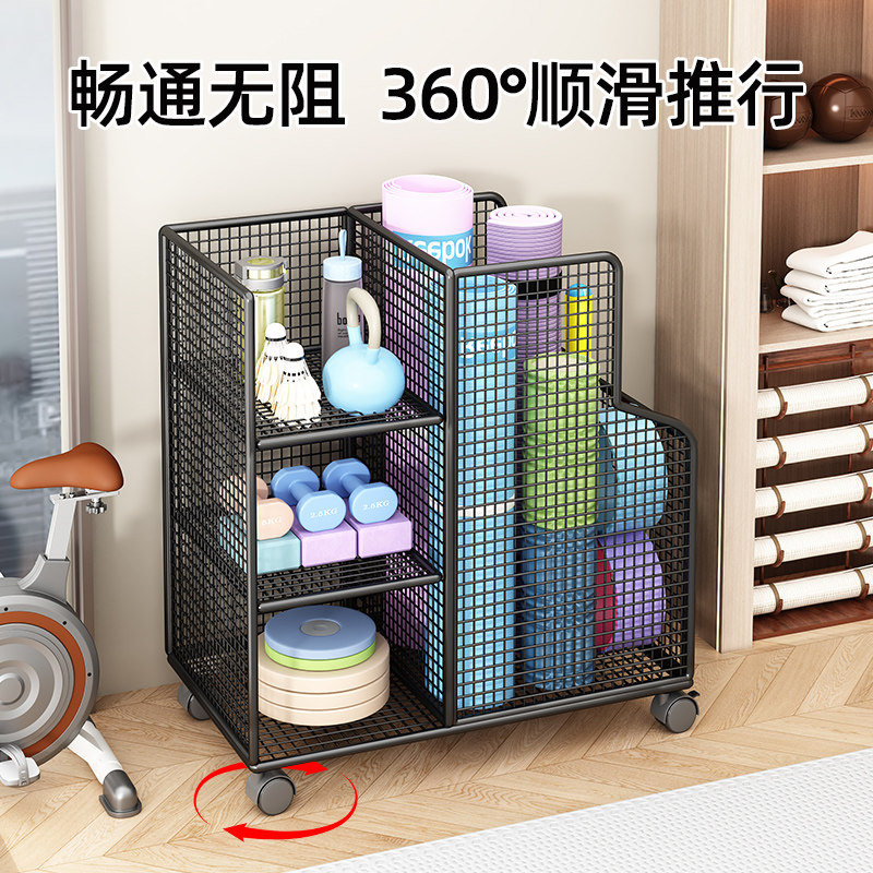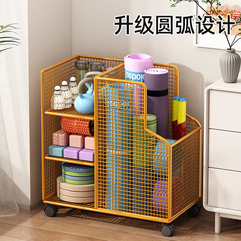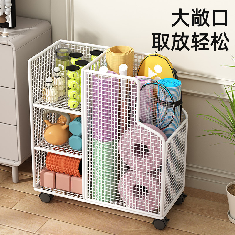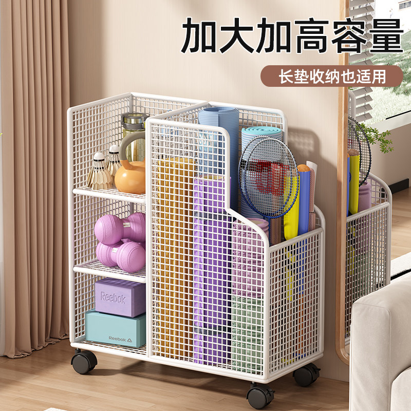 瑜伽垫收纳筐运动健身器材收纳架家用带轮篮球羽毛球拍置物架移动