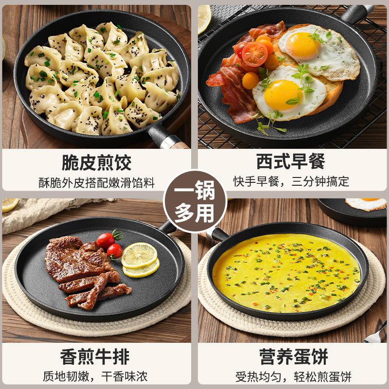 加厚铸铁平底锅20cm家用无涂层烙饼锅手抓饼不粘煎锅煎饼果子工具