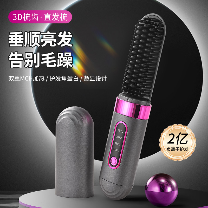 无线直发梳负离子不伤发自动卷发棒直卷两用小直板夹蓬松神器旅行