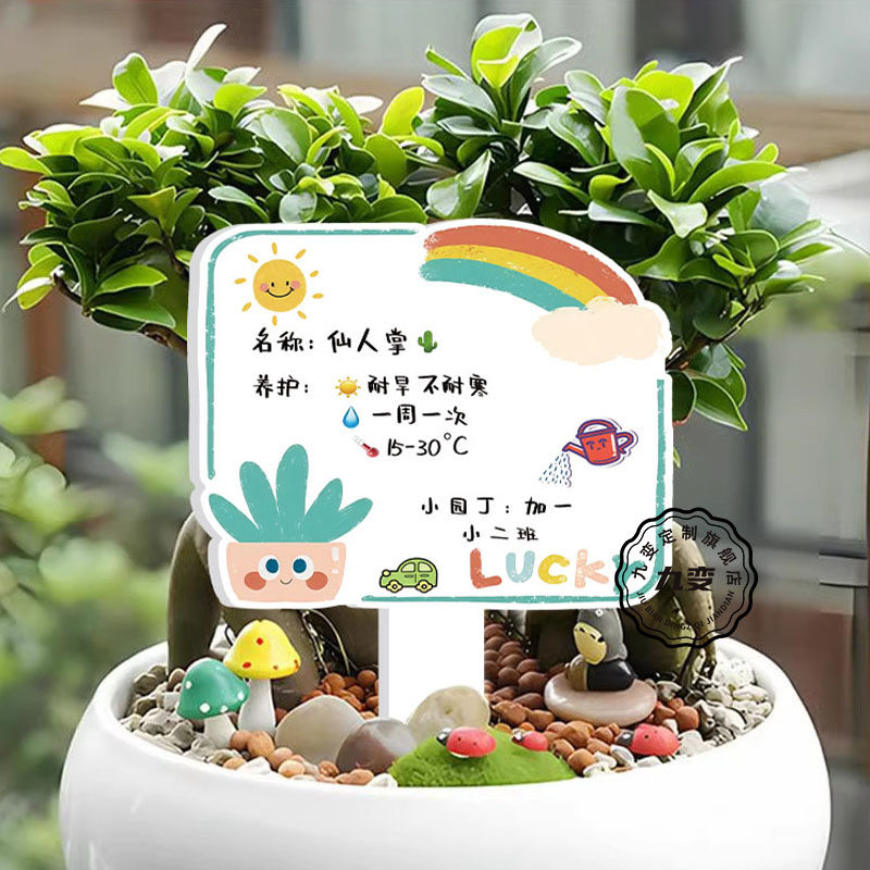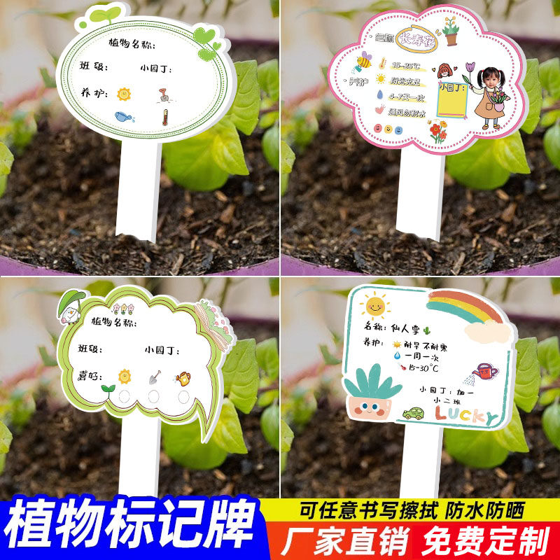 幼儿园植物标签可擦写插牌定制花卉盆栽植物信息介绍牌绿植DIY养护卡片标识牌防水园艺擦拭标签介绍牌定制贴