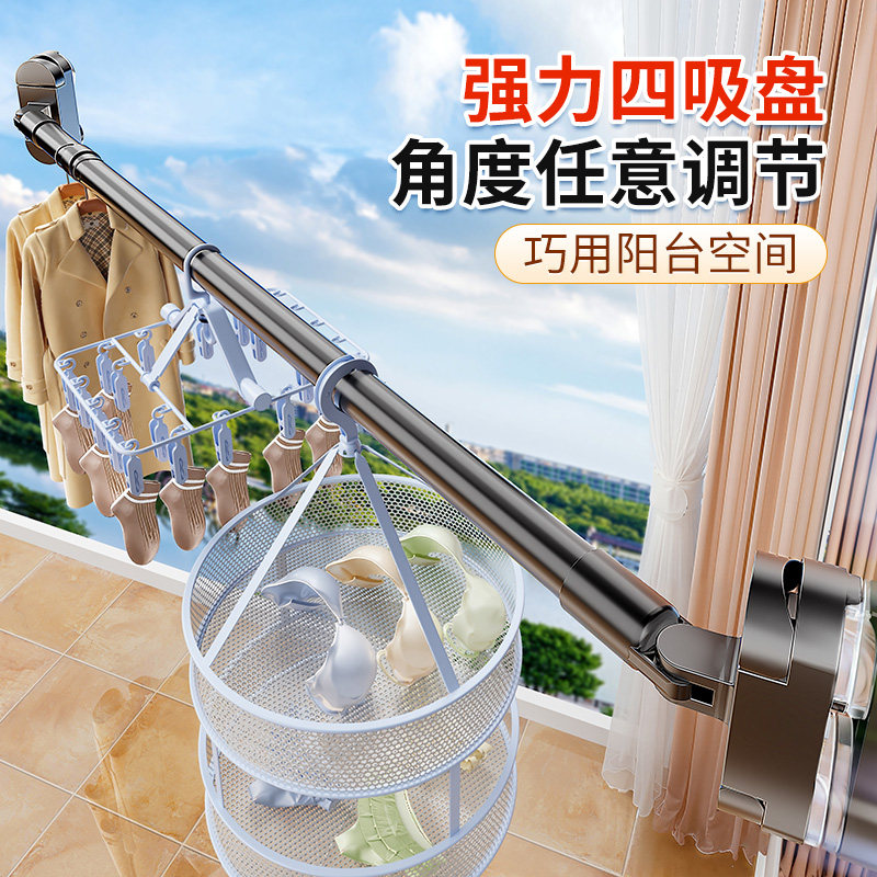 博仕奥吸盘晾衣杆可伸缩免打孔晾衣架家用墙上阳台飘窗挂晒神器