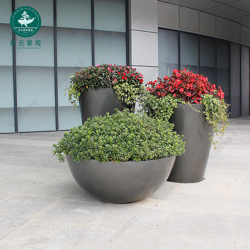 户外广场玻璃钢花盆商场花钵圆形花箱移动种植树池组合售楼部花器