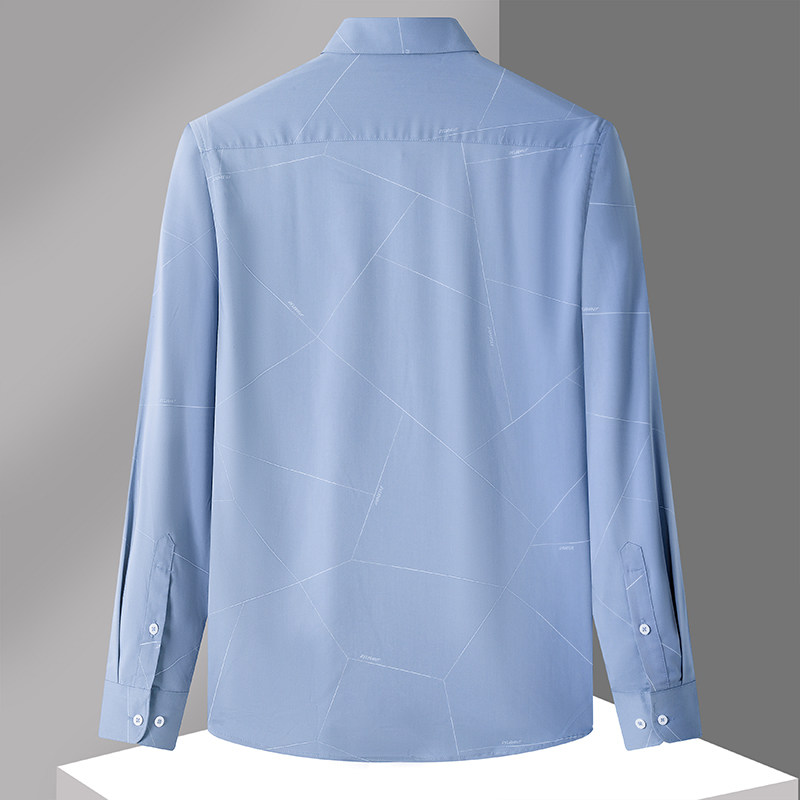 2024年大牌撤标新款时尚几何印花弹力凉感面料亲肤透气长袖衬衫