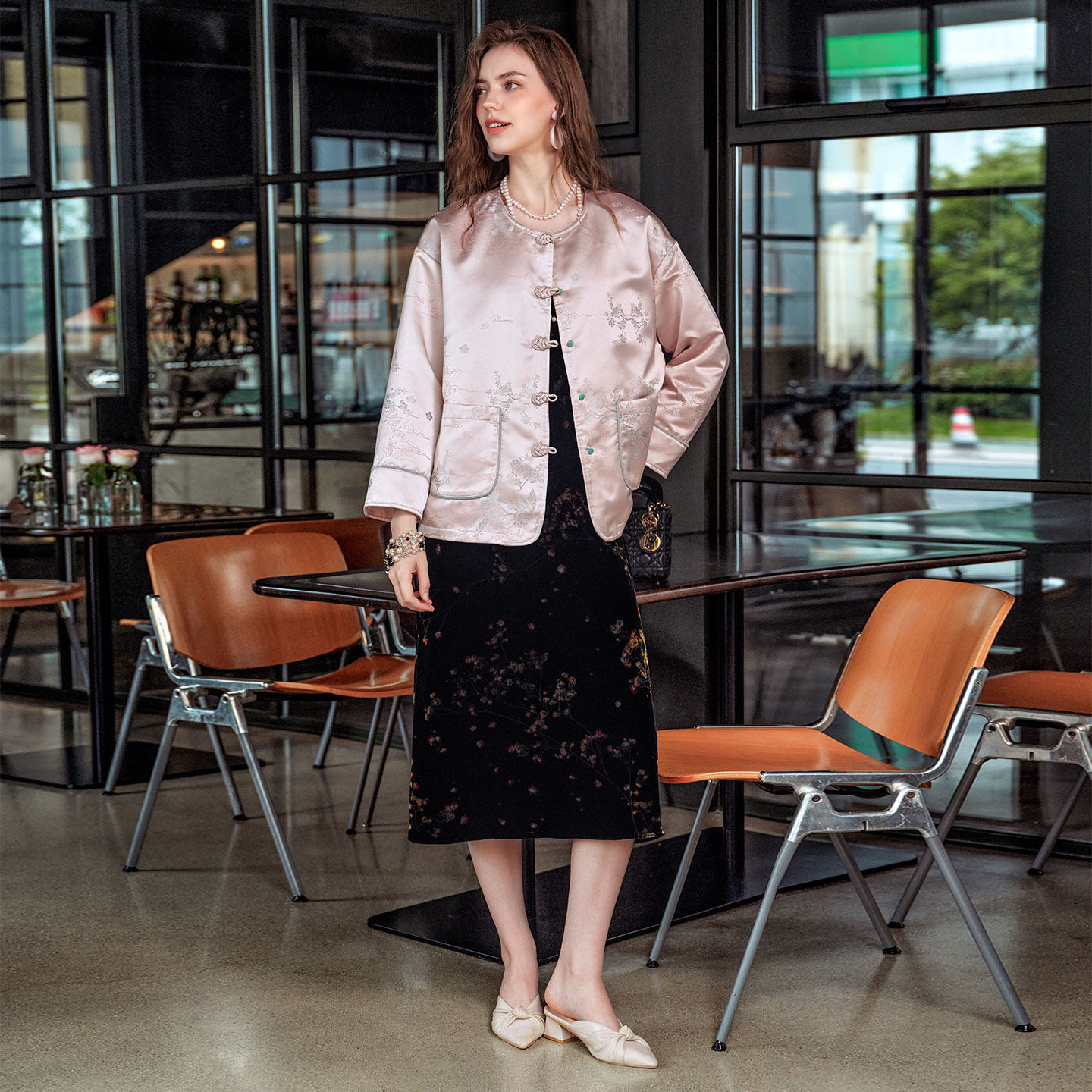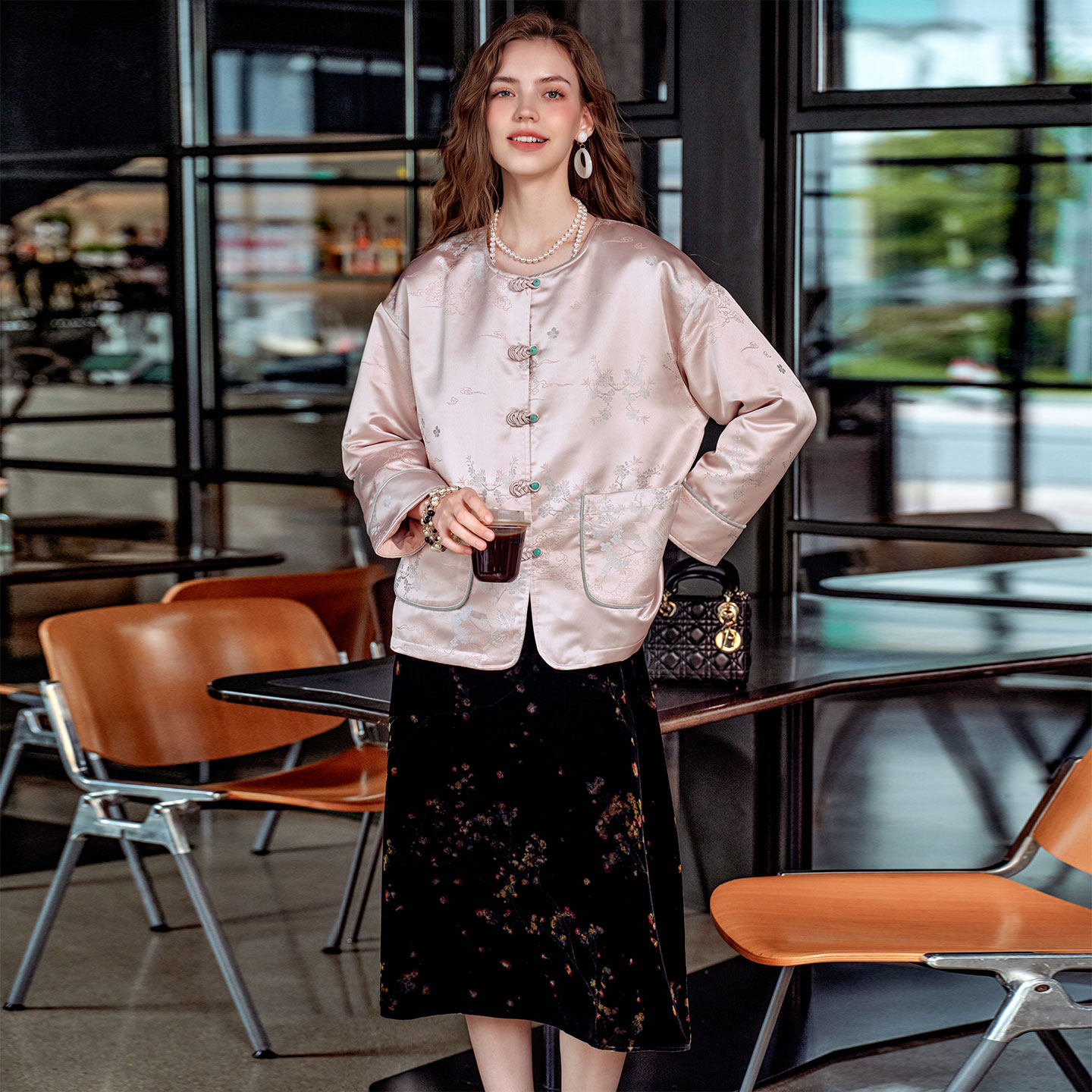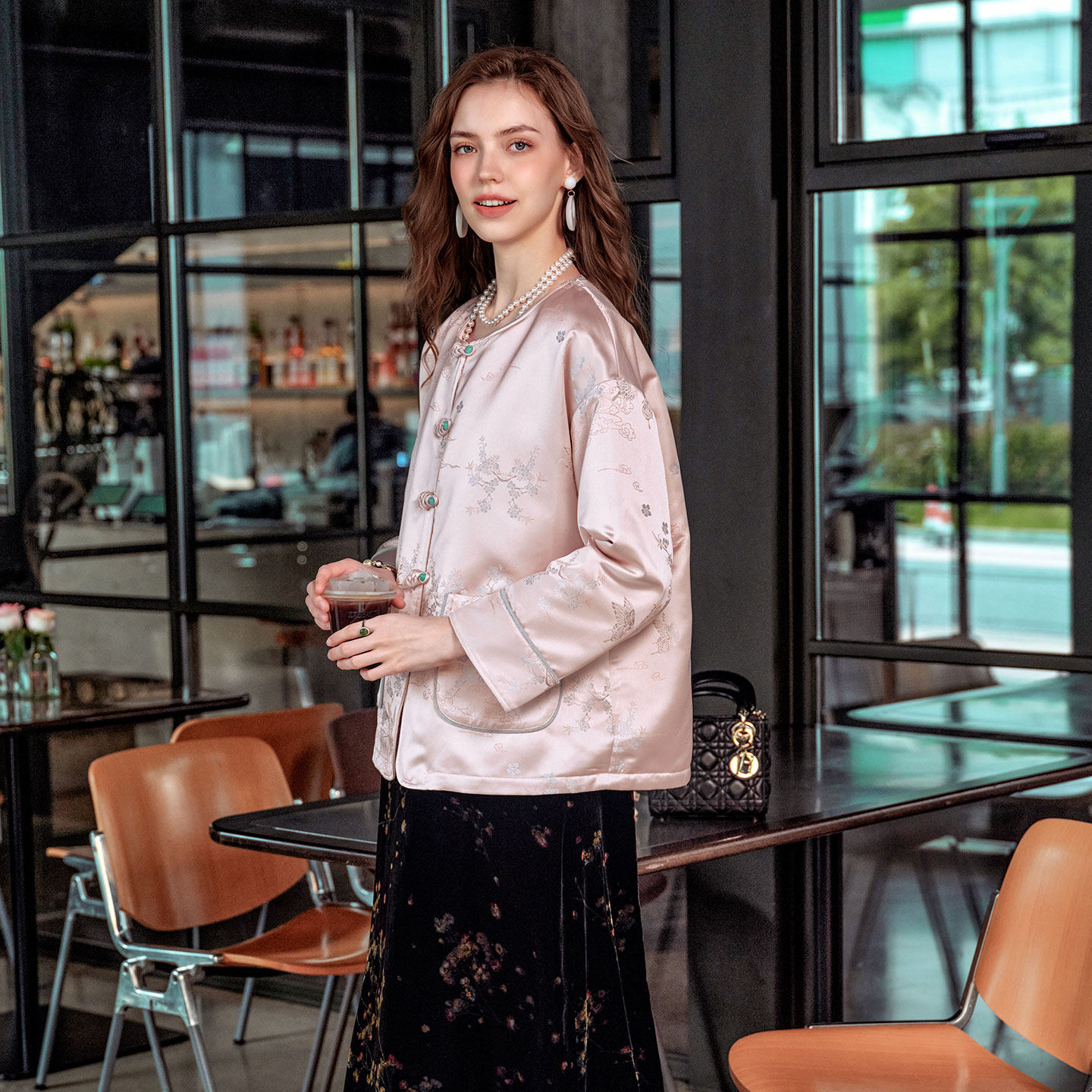 美标2025新中式国风真丝夹棉提花外套女冬100%桑蚕丝填充丝绸上衣