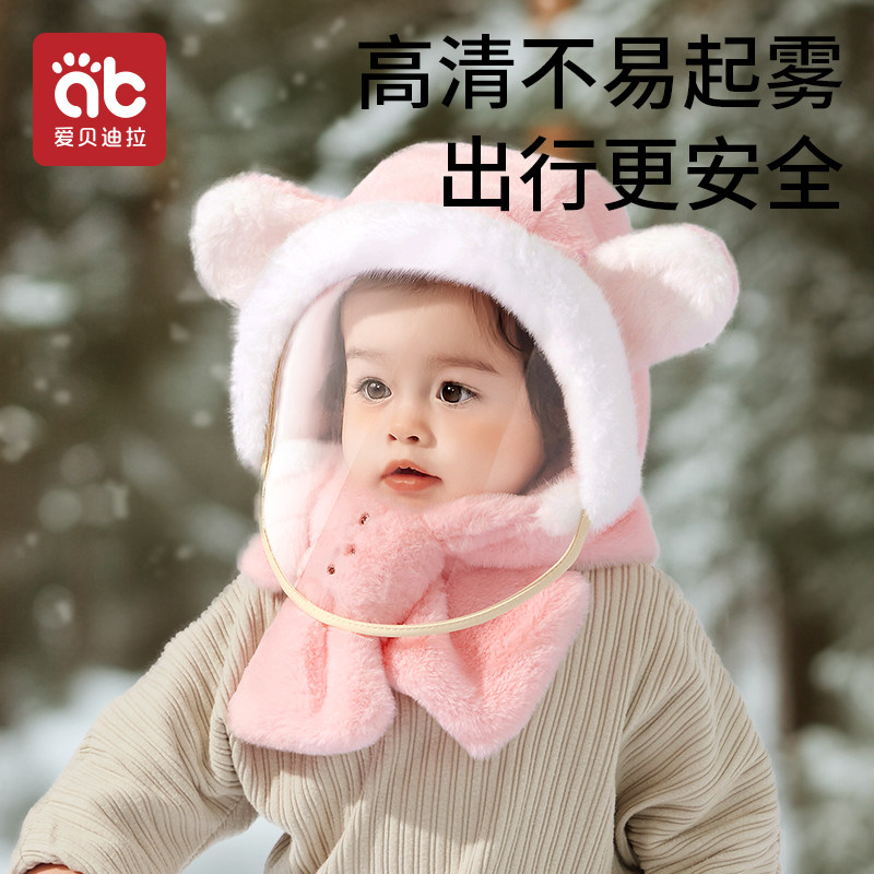 爱贝迪拉儿童防风面罩帽子秋冬季男女童宝宝骑行防寒护耳兔子新款