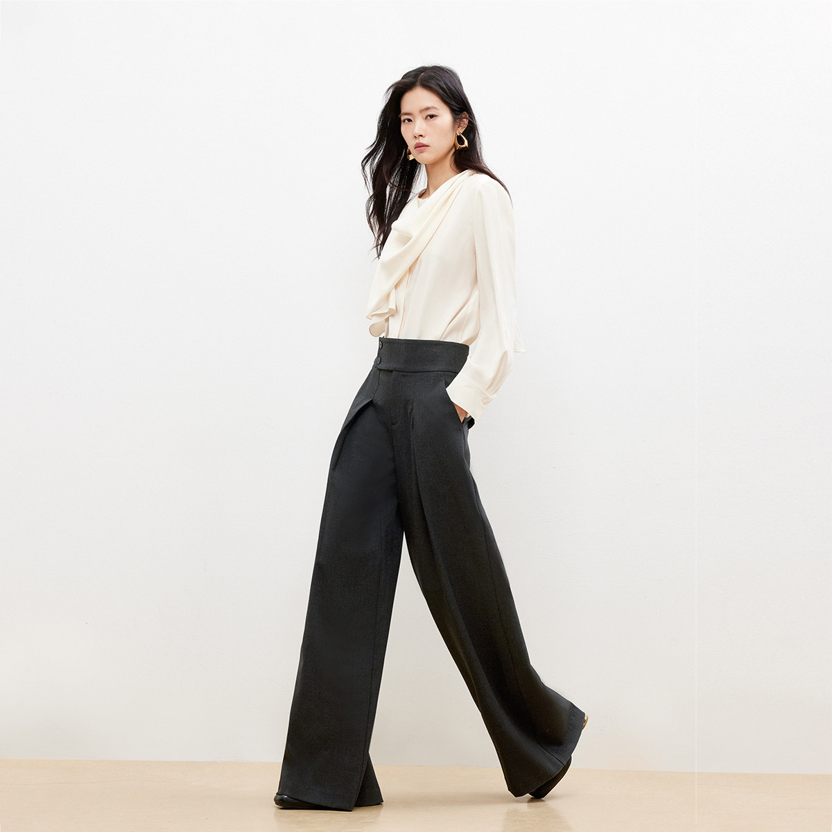 唐狮DESSO秋冬新款糯米裤高腰垂感宽松加绒直筒阔腿裤5