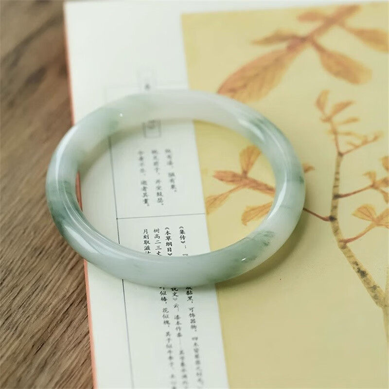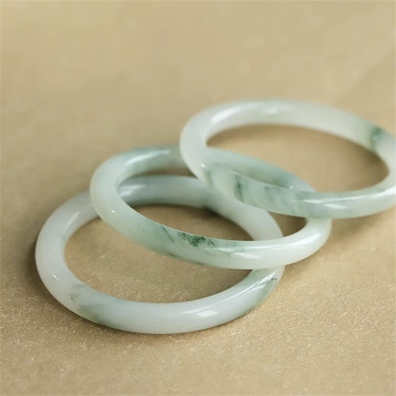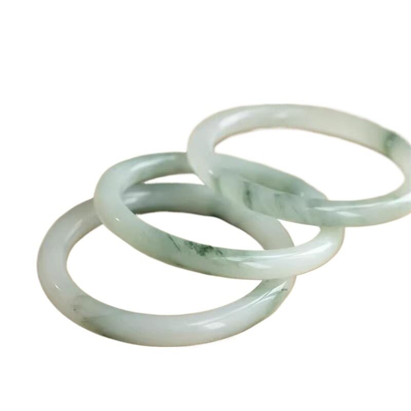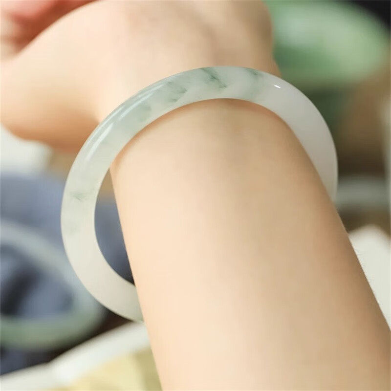 正品新疆天山翠手镯少女古风青白玉镯子圆条飘花真玉石玉镯翡翠