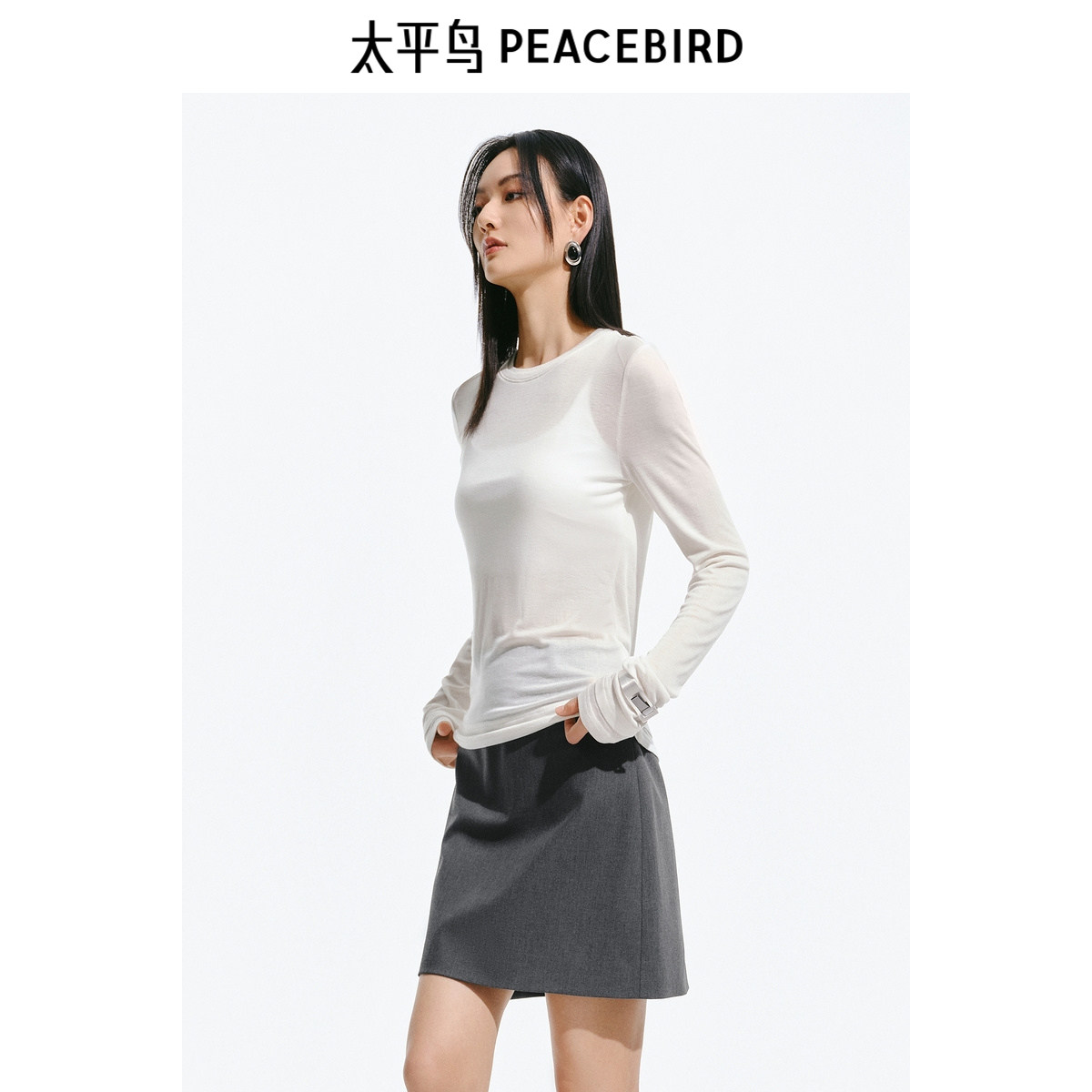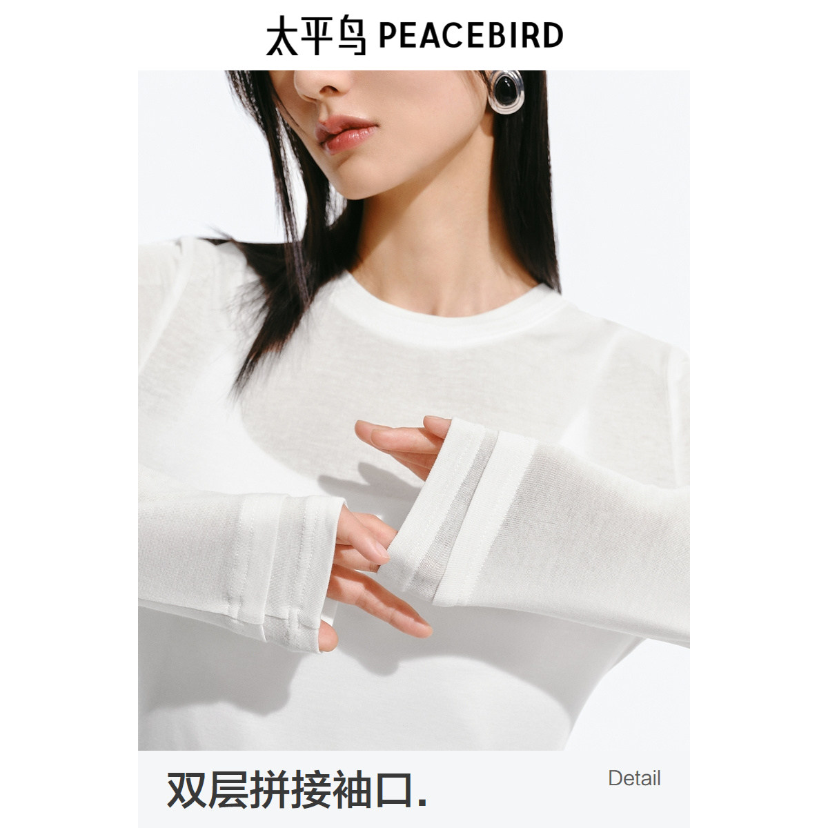 太平鸟 兰精天丝亲肤长袖T恤2025春夏季女士新款修身外穿罩衫上衣