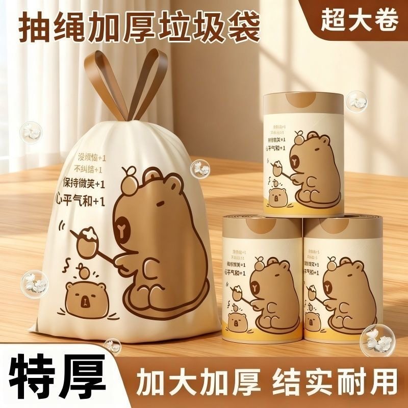 家用加厚卡通抽绳式垃圾袋加厚手提厨房宿舍学生大号黑色塑料袋