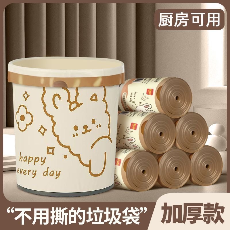 青崎可降解拉抽绳垃圾袋家用加厚手提式厨房环保免撕自动收口大号