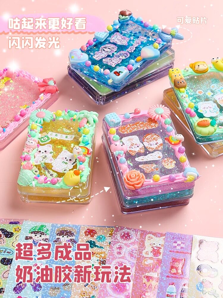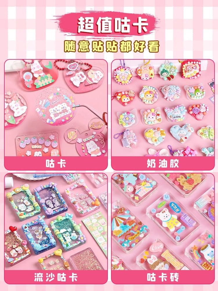 奶油胶流沙咕卡异形卡砖手账贴纸套装古卡麻将工具材玩具女孩