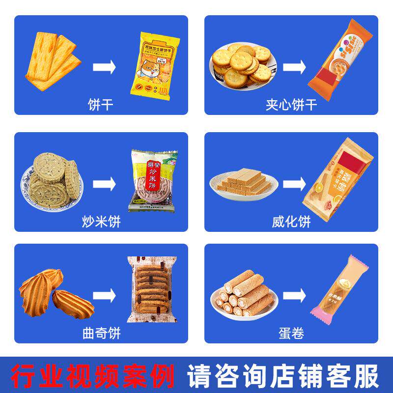 全自动曲奇蛋卷奥利奥饼干枕式包装机炒米饼威化饼打包伺服枕式机