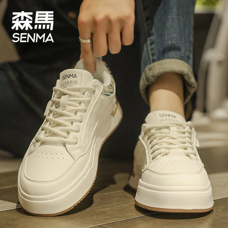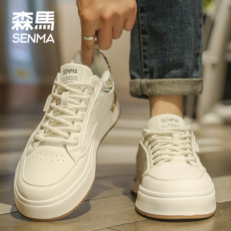 森马小白鞋男款2025新款夏季透气增高运动休闲鞋子男真皮板鞋
