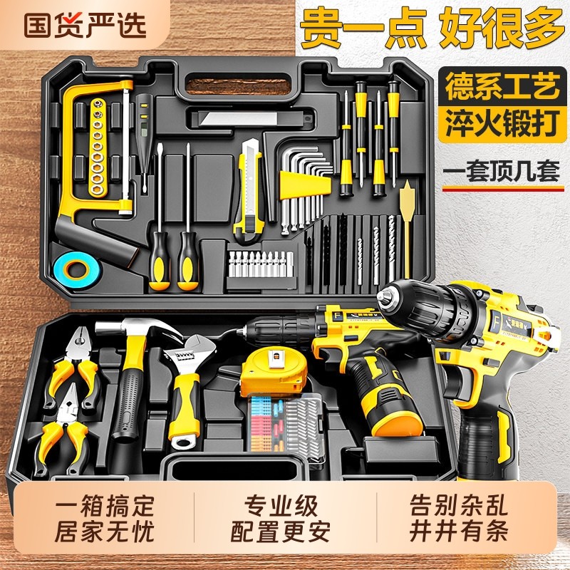 爱瑞德家用工具箱套装锂电手电钻多功能电动螺丝刀五金维修工具箱