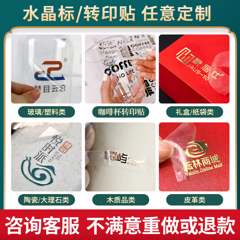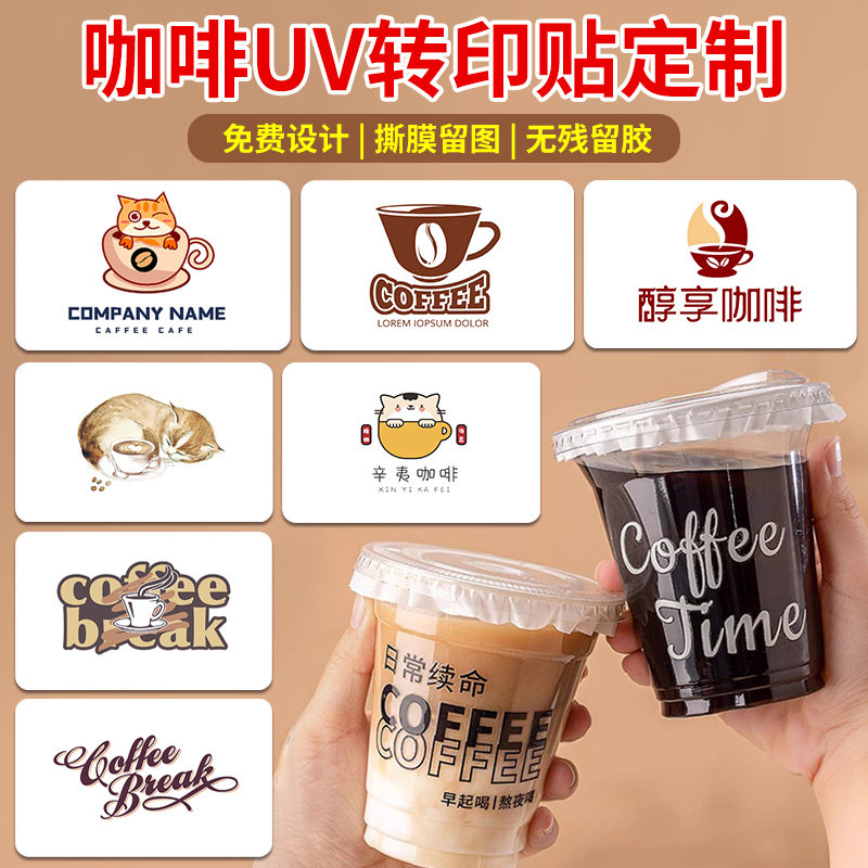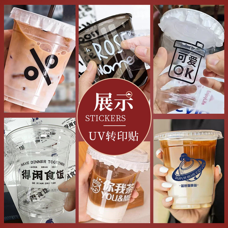 一次性咖啡杯贴纸定制logo水晶标贴高档撕膜留字网红透明标签不干胶设计防水玻璃杯贴奶茶饮料杯子uv转印贴纸
